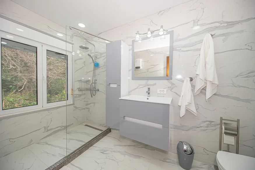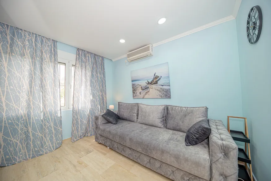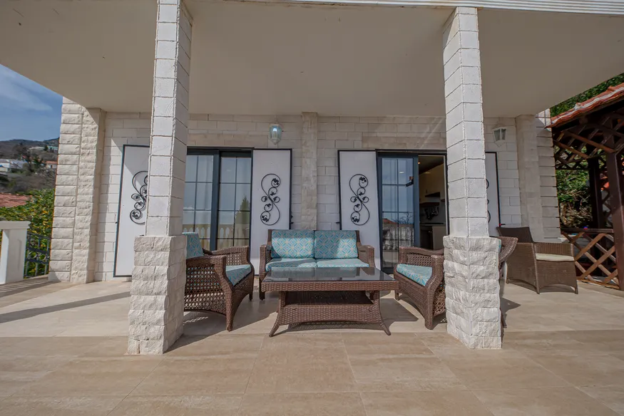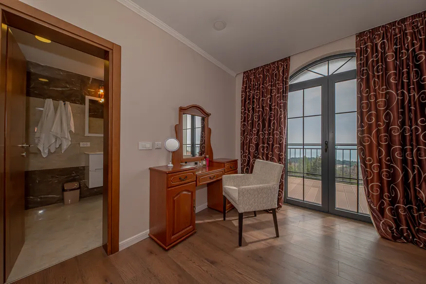 On the third floor there are two bedrooms with private bathrooms and balconies with sea and mountain views.