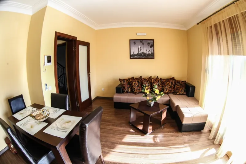 House / apart hotel in Sutomore for sale. The house is located 500 meters from the main pebbly beach and 700 meters from the center of Sutomore. There is free private parking.The house consists of 8 apartments, each with its own bathroom. All apartments are air-conditioned and have a living room with a sofa bed and a flat-screen TV with international channels. The kitchen is fully equipped and the bathroom has a washing machine and shower. The main bus station is 800 meters away. The distance to the airports of Podgorica and Tivat is approximately 37 km and 50 km. The area of the apartments is 47 m2 - 51 m2. In front of the house there are 5 parking places.