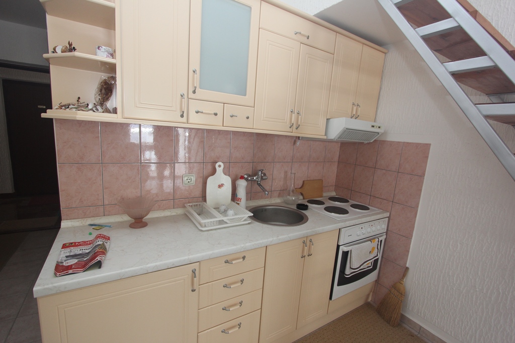 Layout of the apartment: The apartment consists of two levels. On the first level there is a living room with a fully equipped and functional kitchen and a bathroom. On the second level there is a bedroom with a double bed and a wardrobe.