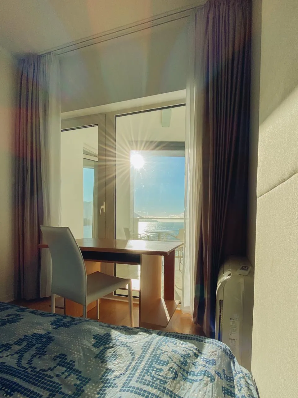 В апартаментах есть две уютные и просторные спальни, и ванная комната. Кроме того, в апартаментах есть терраса, где вы сможете насладиться солнцем, утренним кофе или просто полюбоваться морем.
