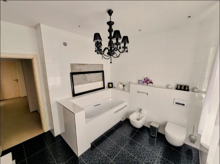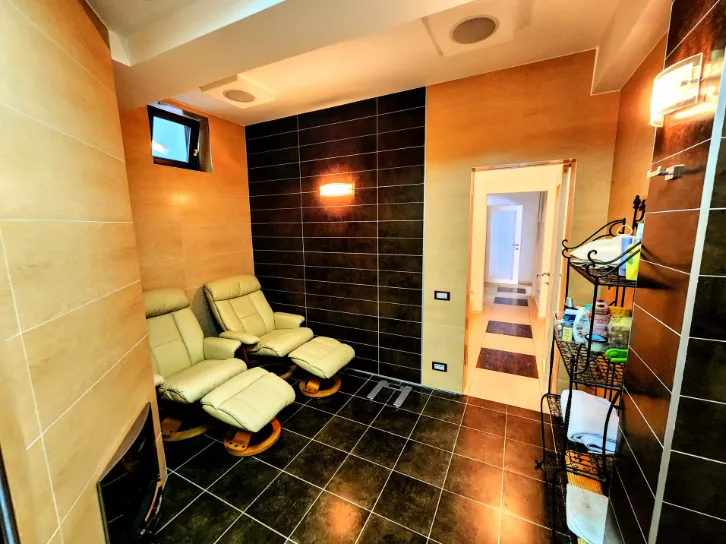 The villa features 4+1 bedrooms, 3 modern bathrooms, and 2 large terraces, perfect for enjoying the serene surroundings. It also includes a private sauna for relaxation. Air conditioning is installed throughout the property, ensuring comfort year-round.