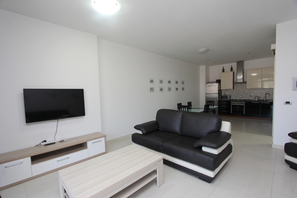 Luxury apartment for sale in Budva, with a total area of 85 m2. The apartment is located on the sixth floor in a seven-story building with an elevator. The building is within walking distance of the beach, the promenade line, restaurants and all amenities. The apartment is fully furnished. The apartment has a living room with a kitchen, a bedroom, a bathroom and a large terrace. The apartment is equipped with a smart home system and floor heating system.