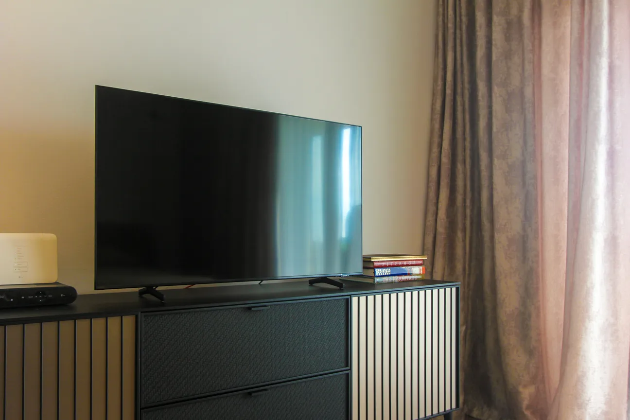 Планировка квартиры: гостиная со столовой, совмещенная с открытой кухней, ванная комната и просторный балкон. Квартира меблирована и оборудована, продается со всей мебелью. С террасы есть прямой выход к бассейну.