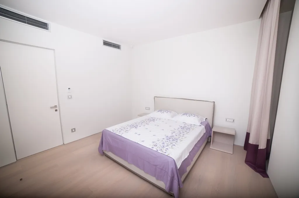 Квартира расположена на первой линии от моря, благодаря чему из неё открывается чудесный вид на море, остров Святого Николая и Старый город Будва.