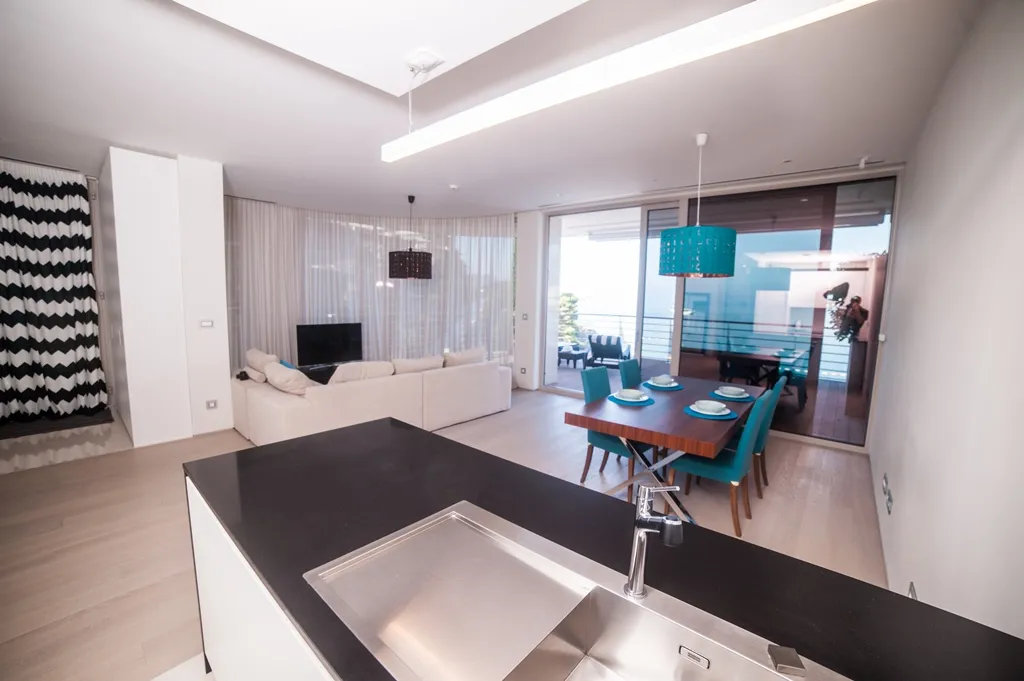 Продается квартира в элитном комплексе в Будве. Этот комплекс расположился на полуострове Завала. На территории комплекса находятся: ресторан, кафе, детский сад и школа, частный пляж, причал для лодок и яхт.