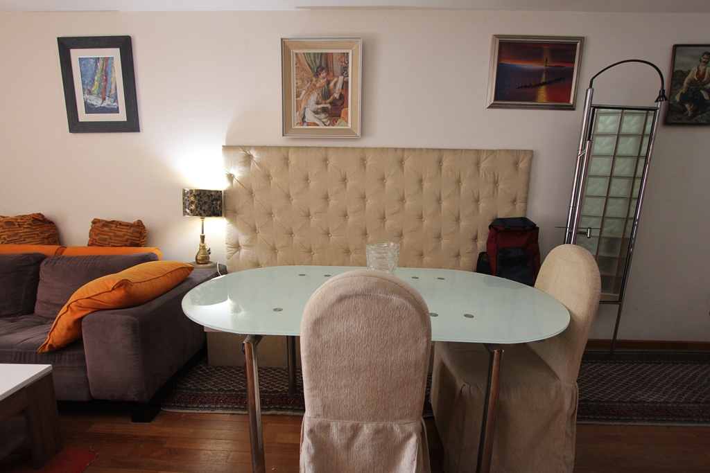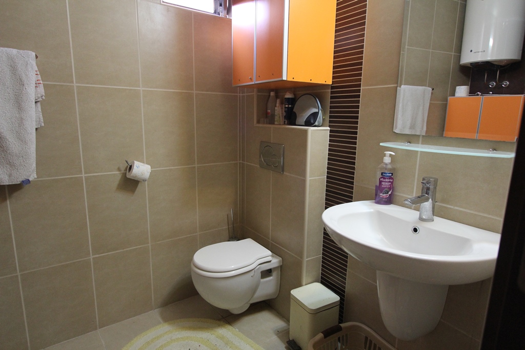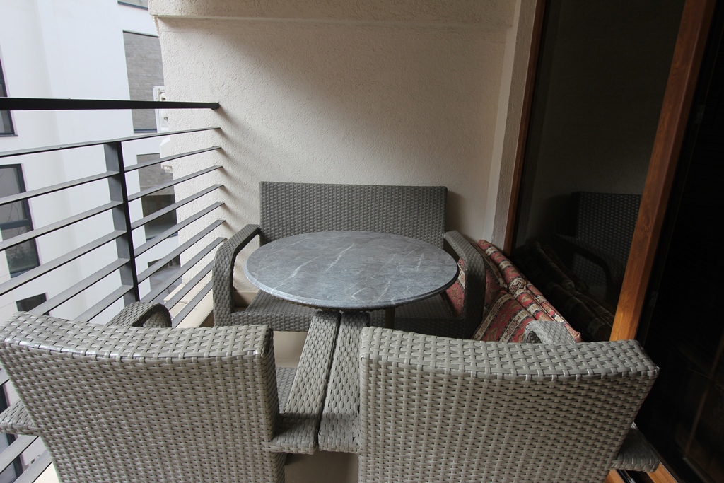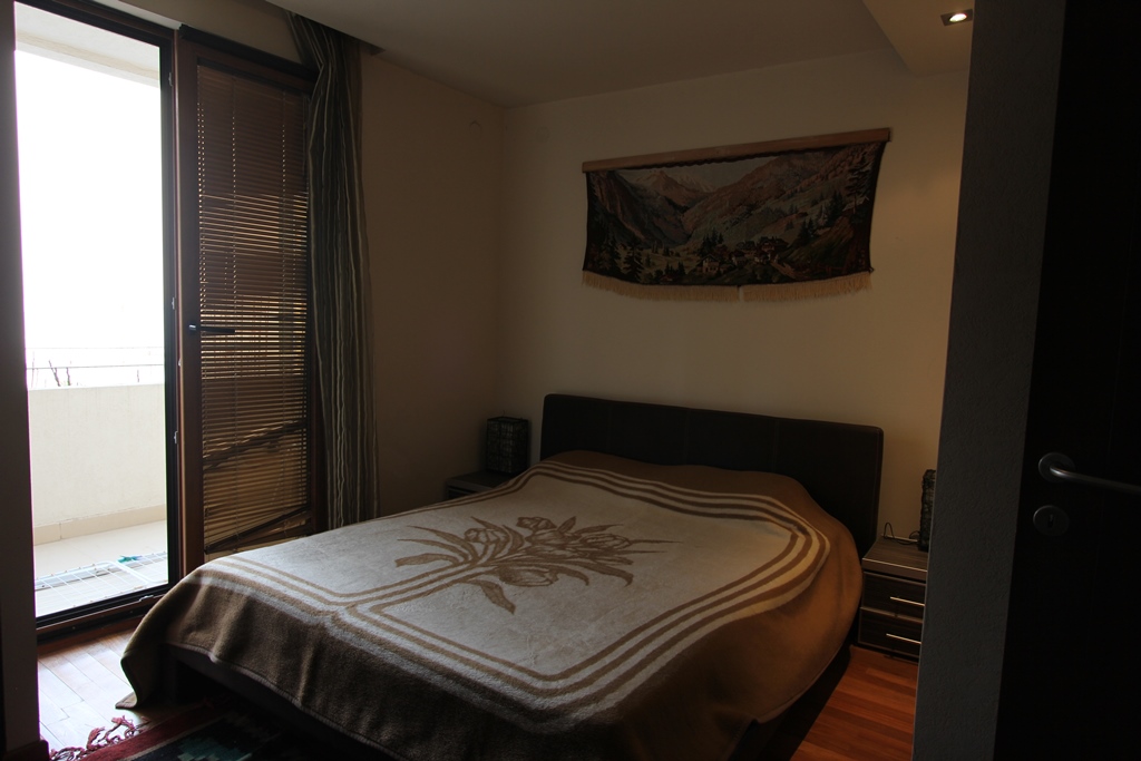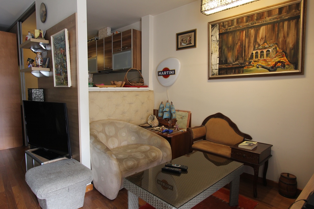 Layout: hallway, kitchen combined with dining room and living room, two bedrooms, bathroom, toilet and 2 terraces. The apartment is fully furnished and equipped with all necessary appliances. All rooms are air conditioned. The apartment has satellite TV and internet. Below the building is a parking lot.