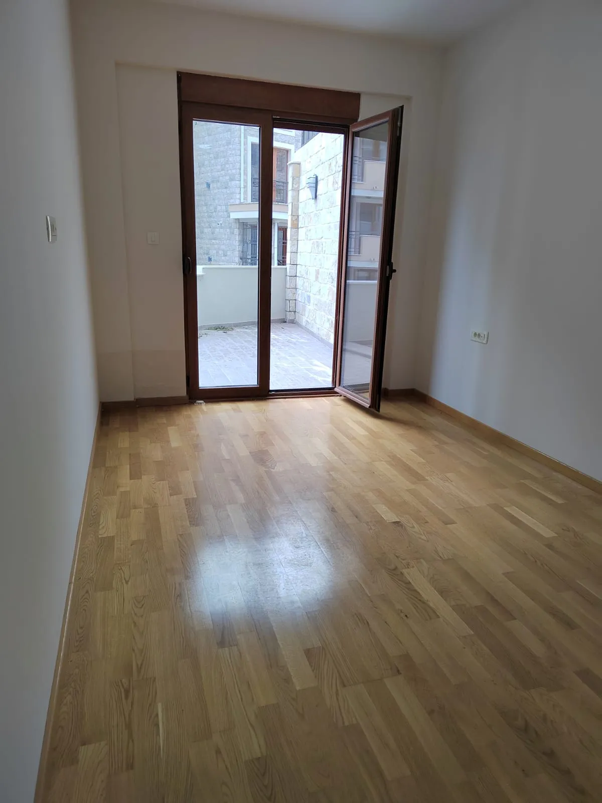 Планировка квартиры: коридор, кухня совмещенная с гостиной, две спальни, ванная и терраса 35м2. Квартира не меблирована.