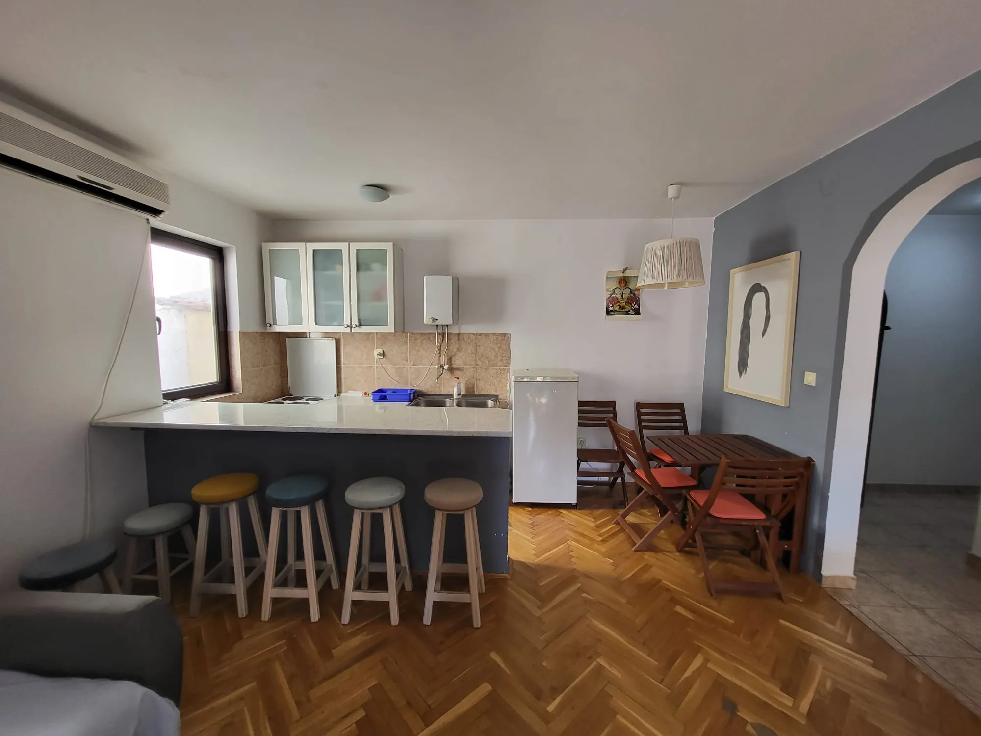 Within walking distance from the apartment there are shops, cafes, restaurants, post office, bus station and all important institutions.