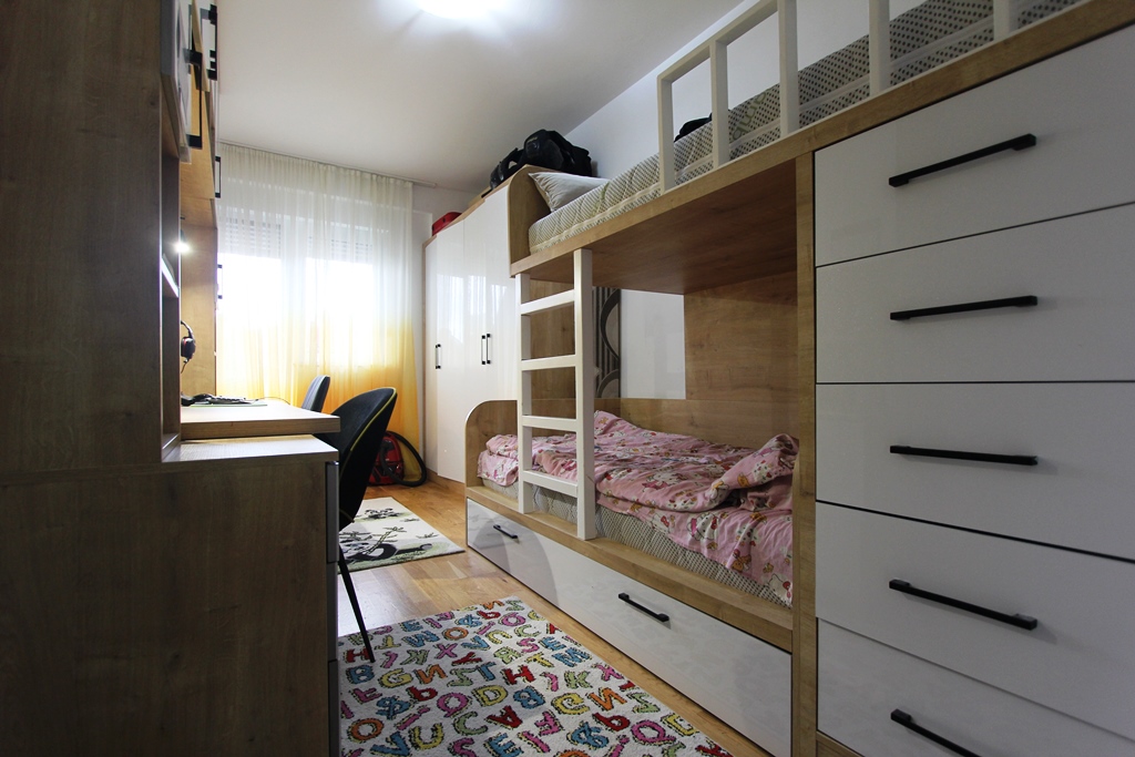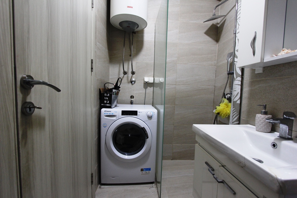 The apartment is fully furnished and equipped and everything in the apartment is custom made. The apartment has a living room, kitchen, two bedrooms and a bathroom. The apartment is oriented on both sides so that one terrace overlooks the sea and the city, and the other terrace overlooks the mountains. It is possible to go out to the terrace from every room. The apartment has 2 air conditioners.