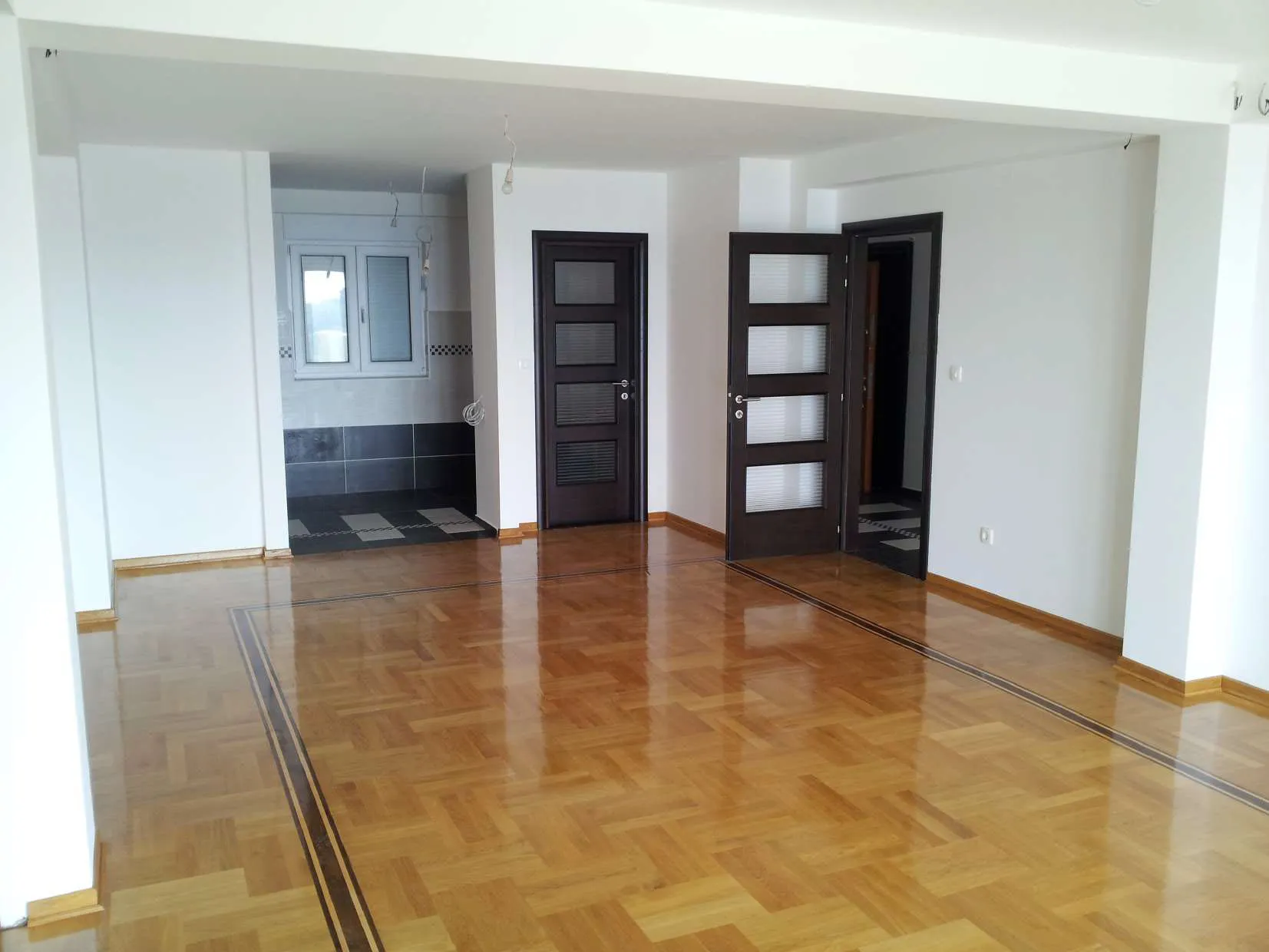 Aufteilung der Wohnung: Küche kombiniert mit Wohn- und Esszimmer, zwei Schlafzimmer, zwei Badezimmer und eine großzügige Terrasse. Die Wohnung verfügt über eine installierte Klimaanlage und wird ohne Möbel verkauft.