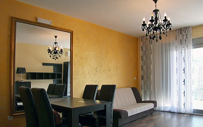 Each apartment has high quality materials: parquet, air conditioner, Spanish ceramics and sanitary ware, hydro massage cabin, PVC windows, blinds, kitchen, hallway. The apartments have a view on: Riviera of Budva, Budva, Sveti Stefan, the island of St. Nikola and settlement.