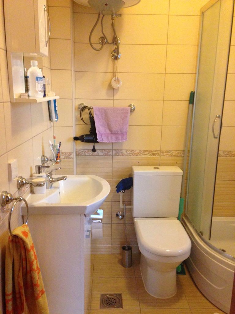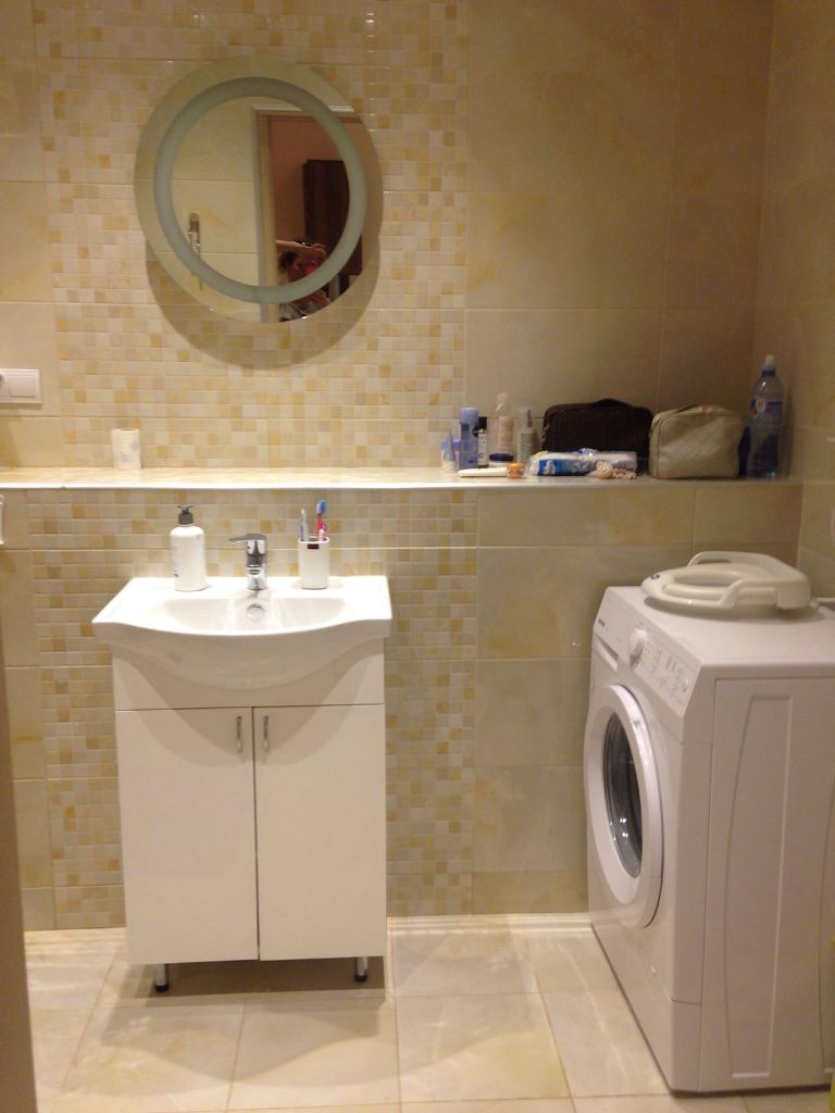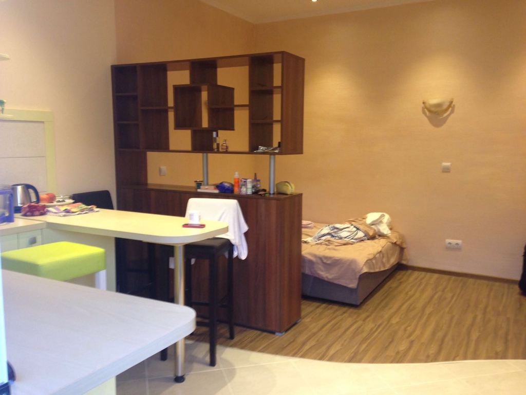 Студия 25 м2 (шкаф, комод, 3 спальных места, микроволновая печь, плита, холодильник, кондиционер, стиральная машина, интернет wi-fi), ванная комната.