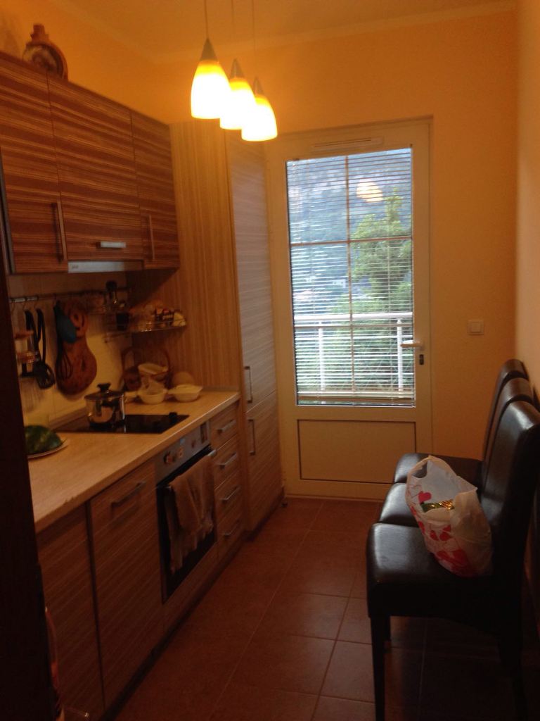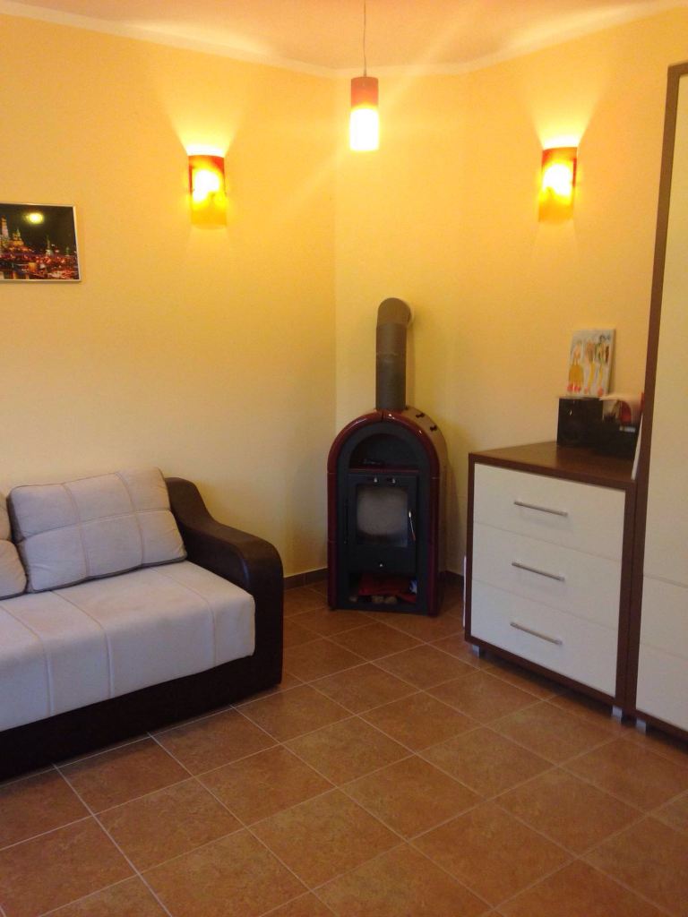 Квартира, площадь 62 м2, состоит из: комната 13 м2 (оборудована шведской стенкой, шкафом, двумя спальными местами, имеет выход на отдельную террасу), комната 19 м2 ( оборудована шкафом, комодом, ТВ со спутником, DVD и Bluray, камин, двуспальный диван), кухня (посудомоечная машина, духовой шкаф, холодильник) с выходом на отдельную террасу с обеденной зоной. Квартира оборудована: кондиционерами во всех комнатах, французская система Aire вентиляции, ванная комната со стиральной машиной и душевой кабиной. Имеется интернет (wi-fi). Вторая терраса 12 м2 имеет выход в сад (виноград, киви, инжир, гранаты) с мангалом.
