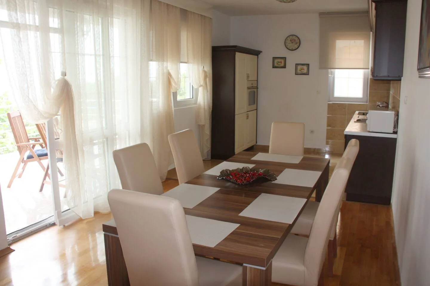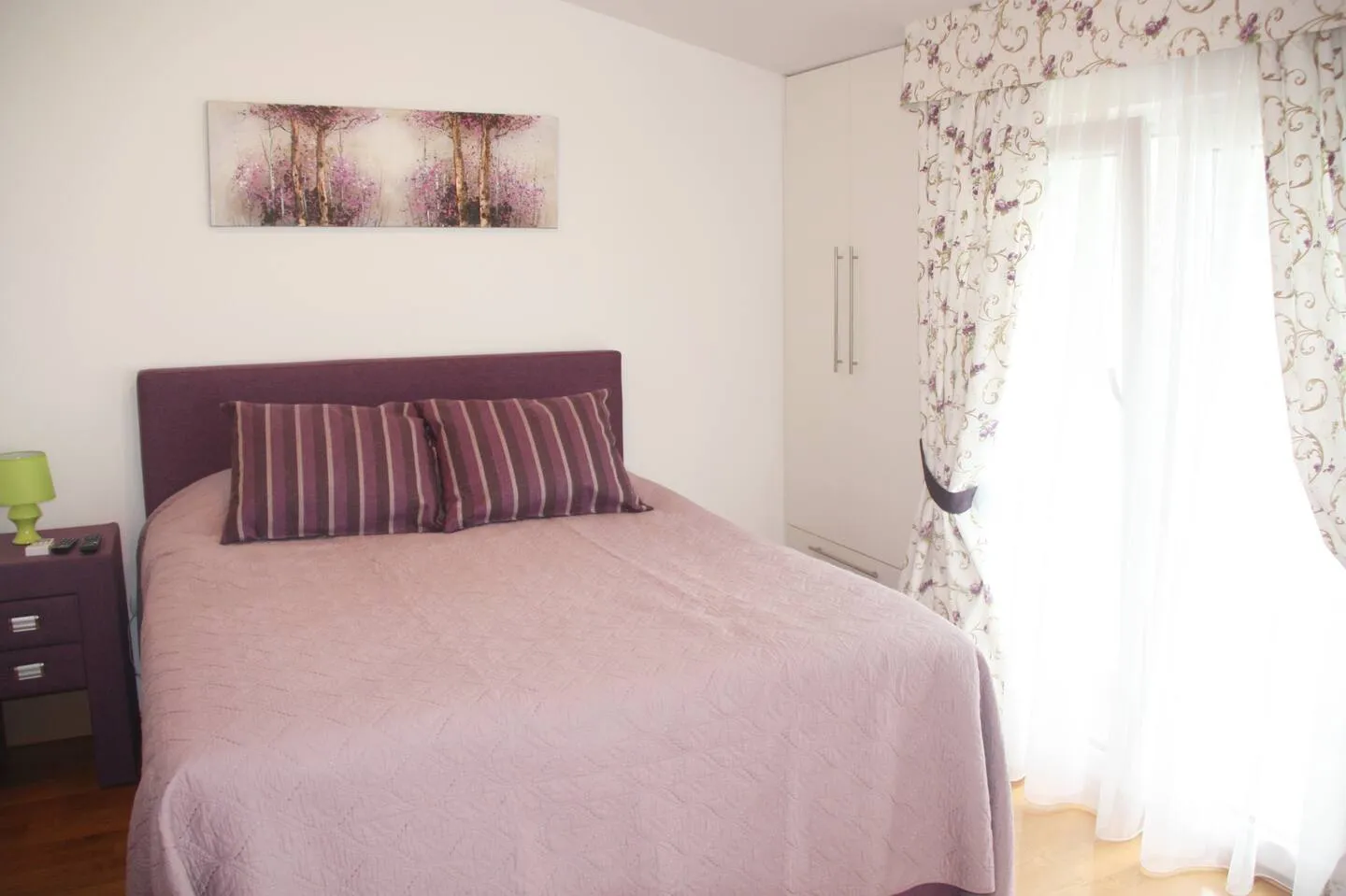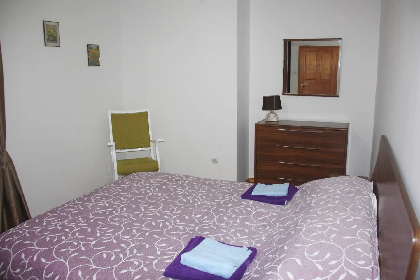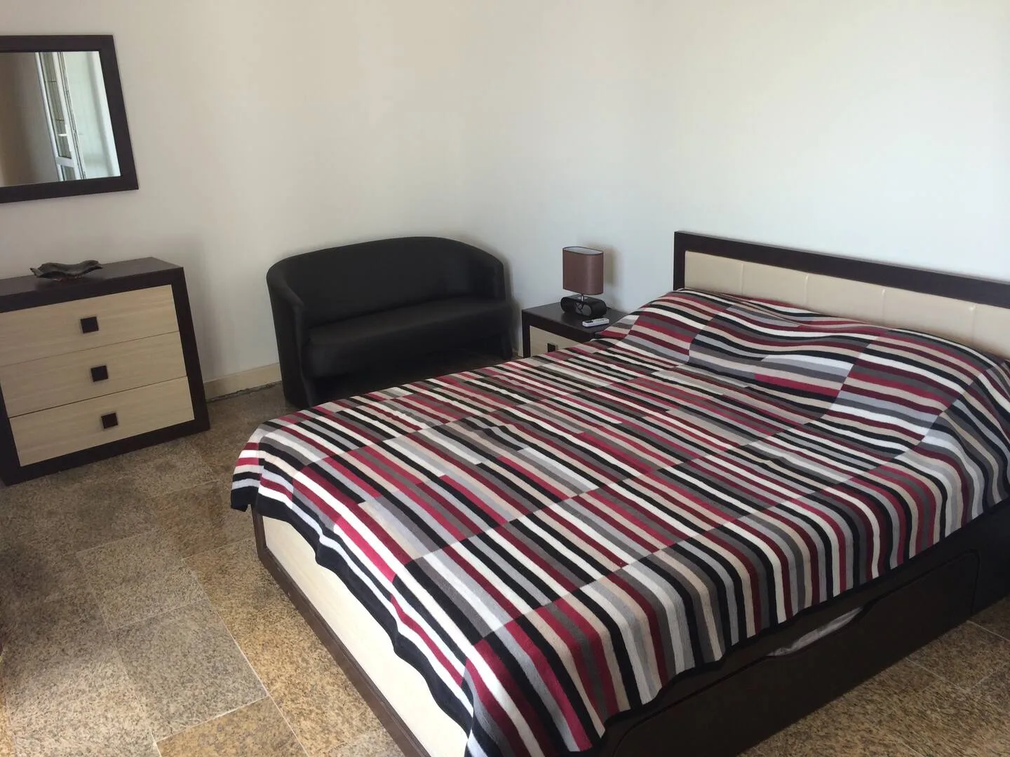 1) 85m2, 2 bedrooms, living room with kitchen, bathroom and terrace.