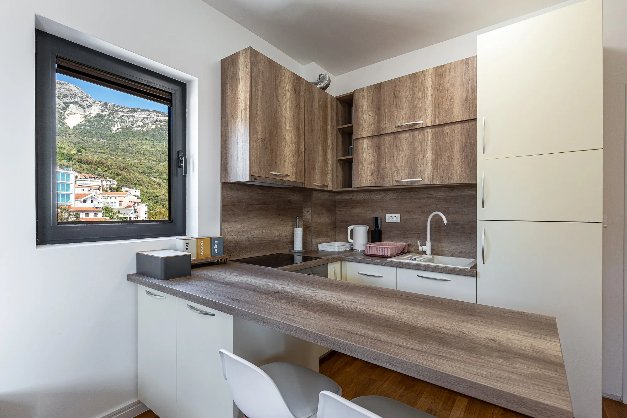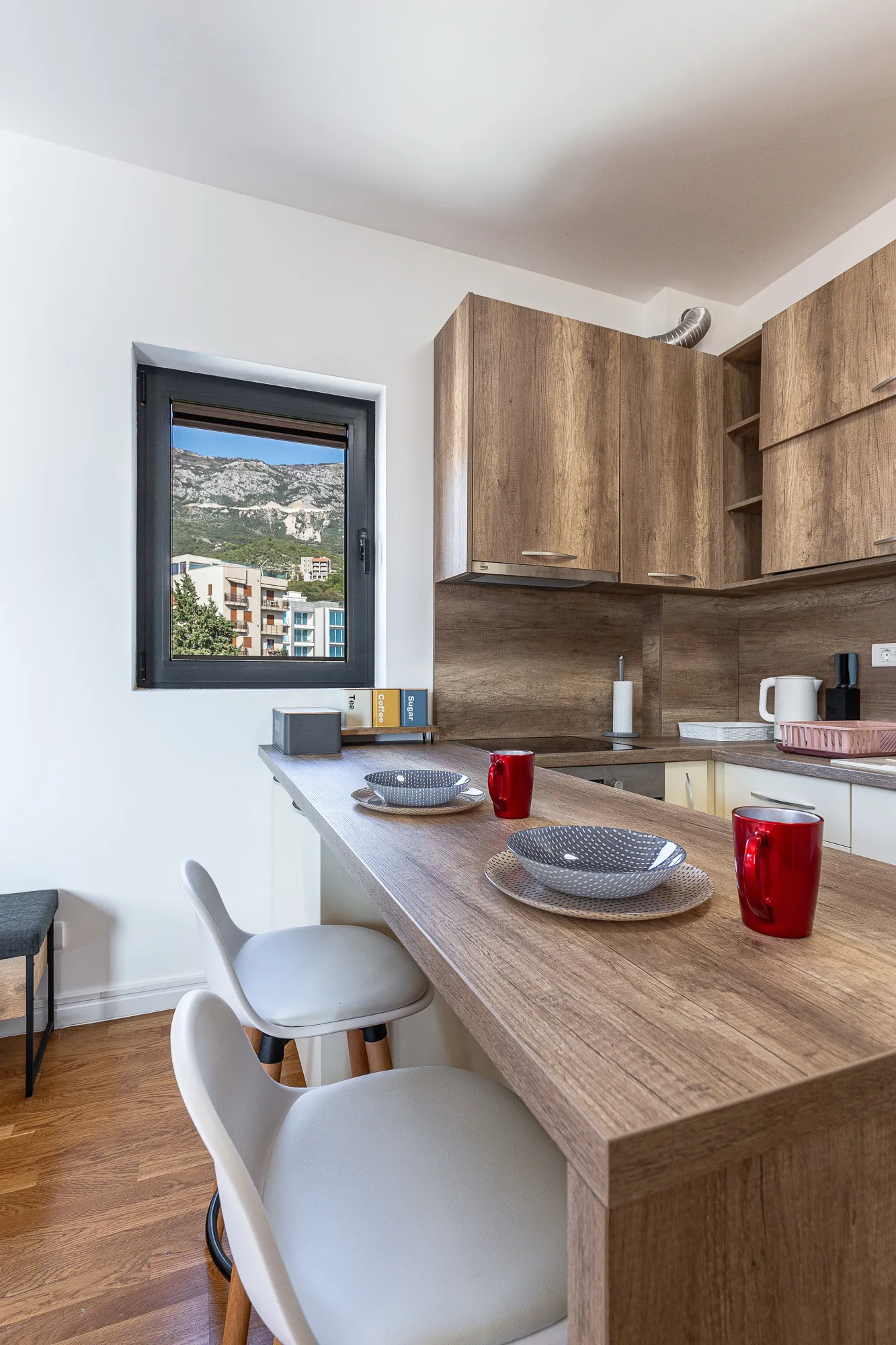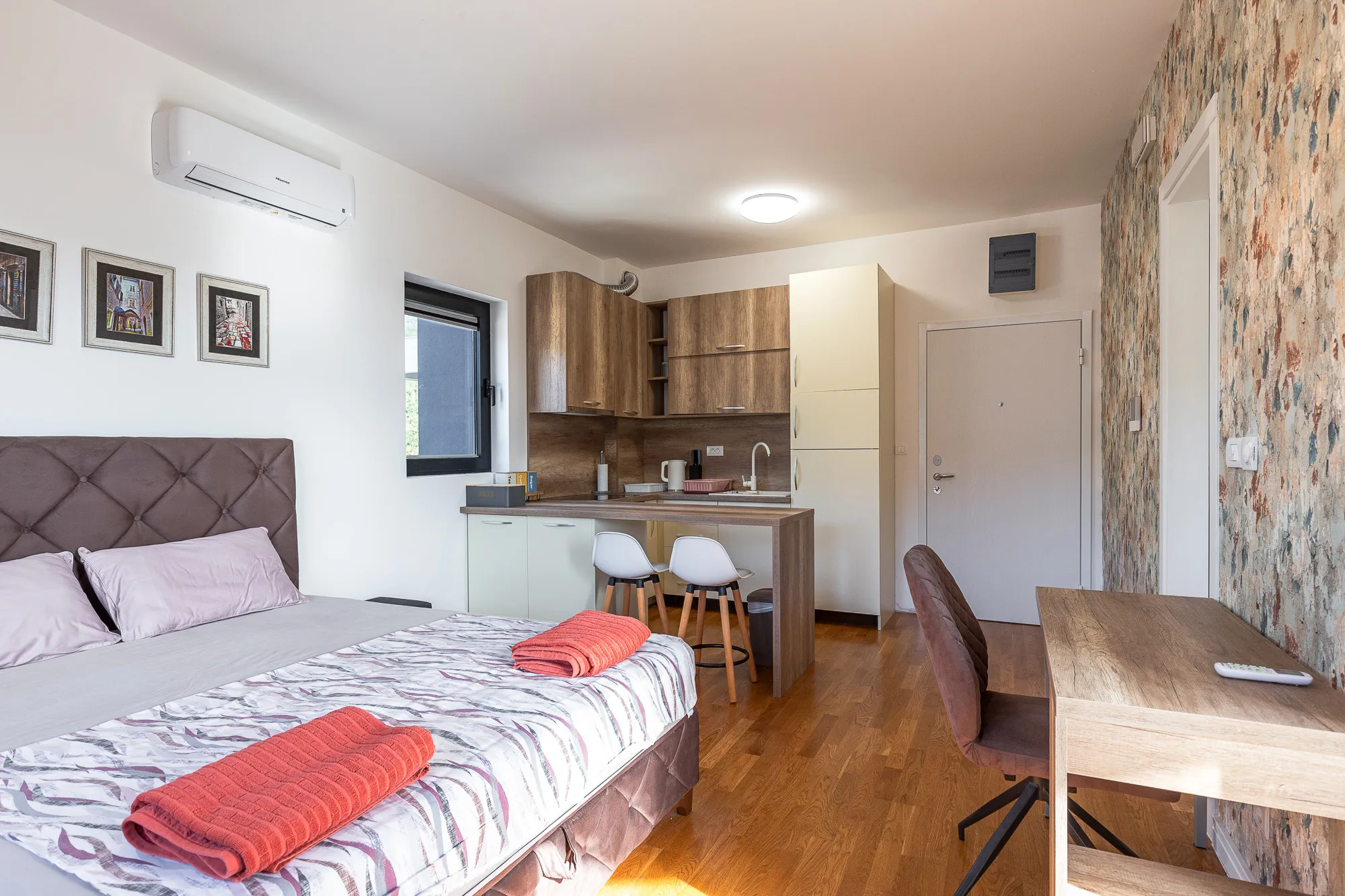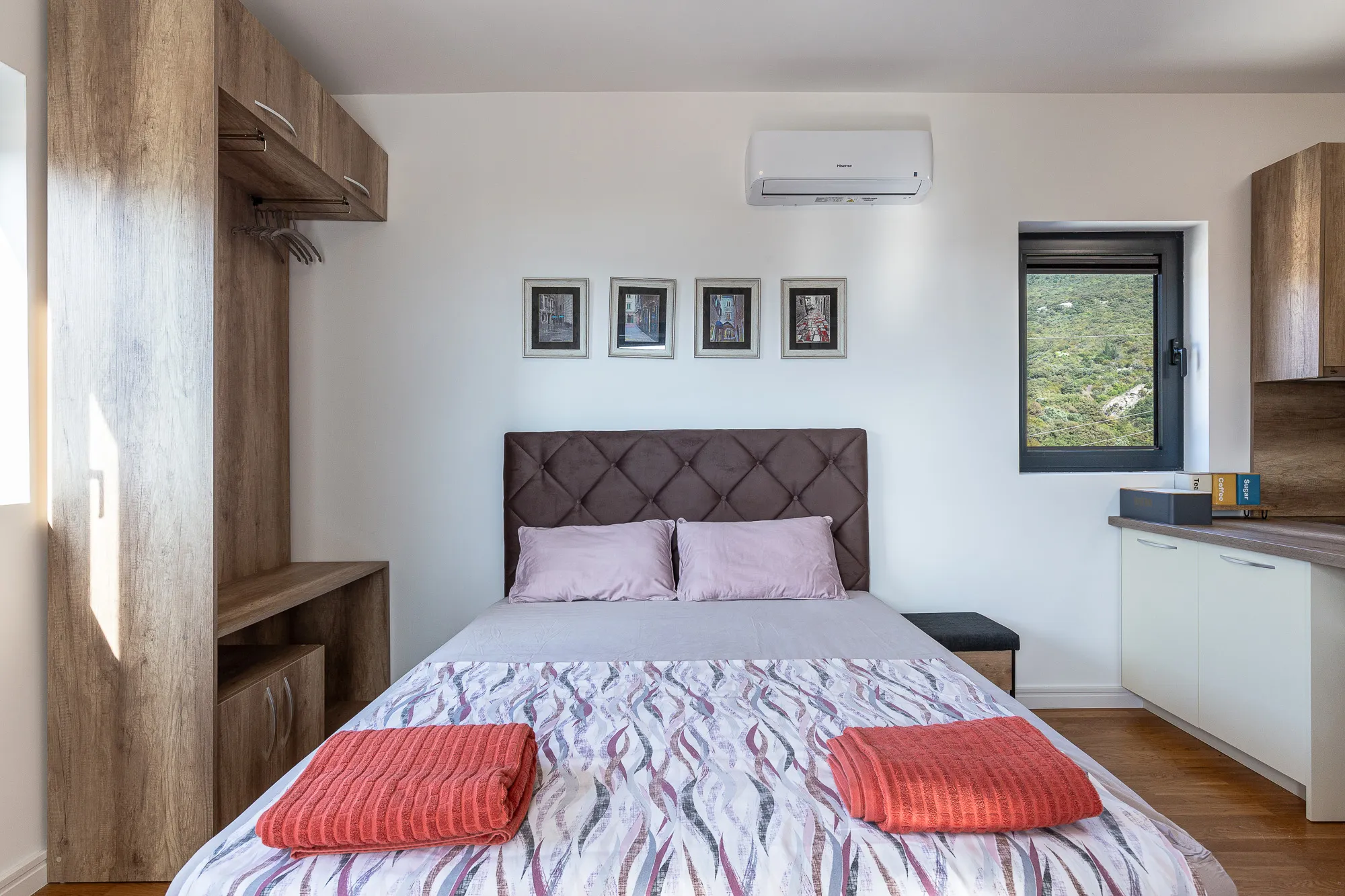 Nur wenige Gehminuten von der Wohnung entfernt befinden sich Geschäfte, Cafés, Restaurants, Post, Busbahnhof und alle wichtigen Institutionen. Die Wohnung ist nur 900 m vom Meer entfernt.
