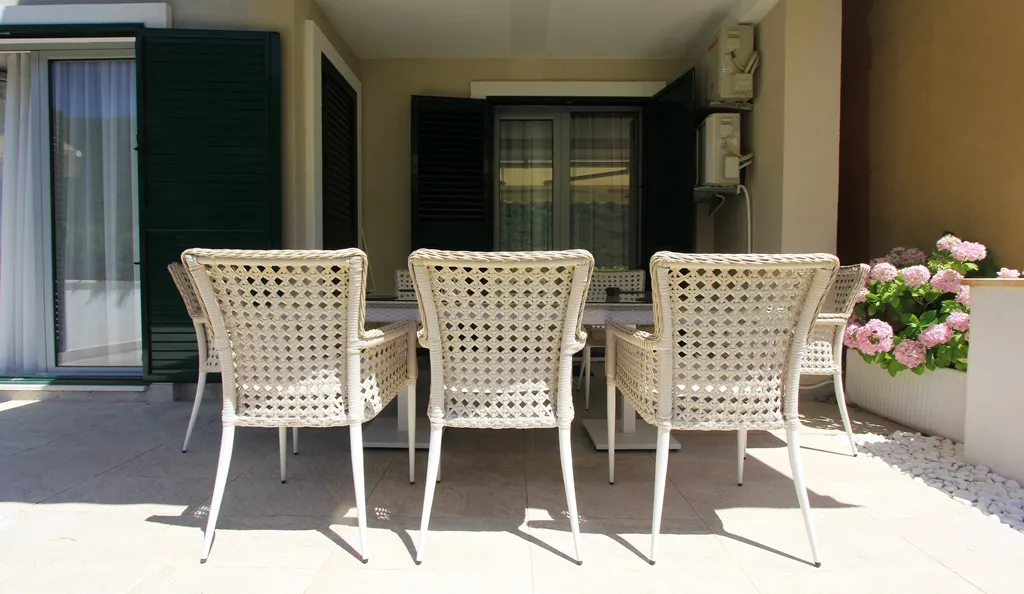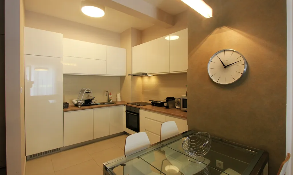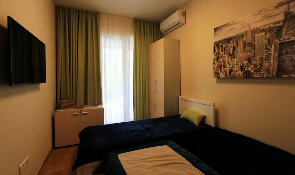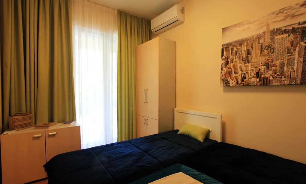 Apartment layout: kitchen combined with living room, three bedrooms, two bathrooms + toilet, extremely spacious terrace. The apartment is fully furnished and equipped. All rooms are air conditioned. The apartment has satellite TV and internet.