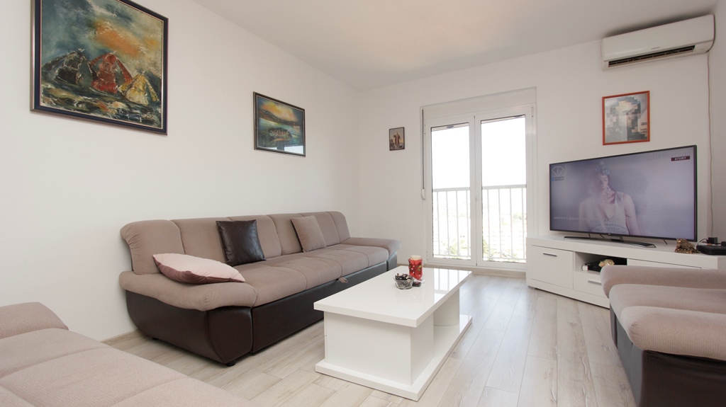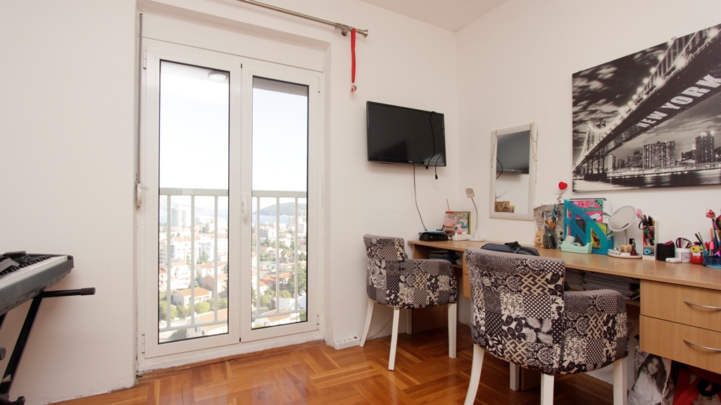 2 in Budva. Die Wohnung befindet sich im vierten Stock eines fünfstöckigen Gebäudes.