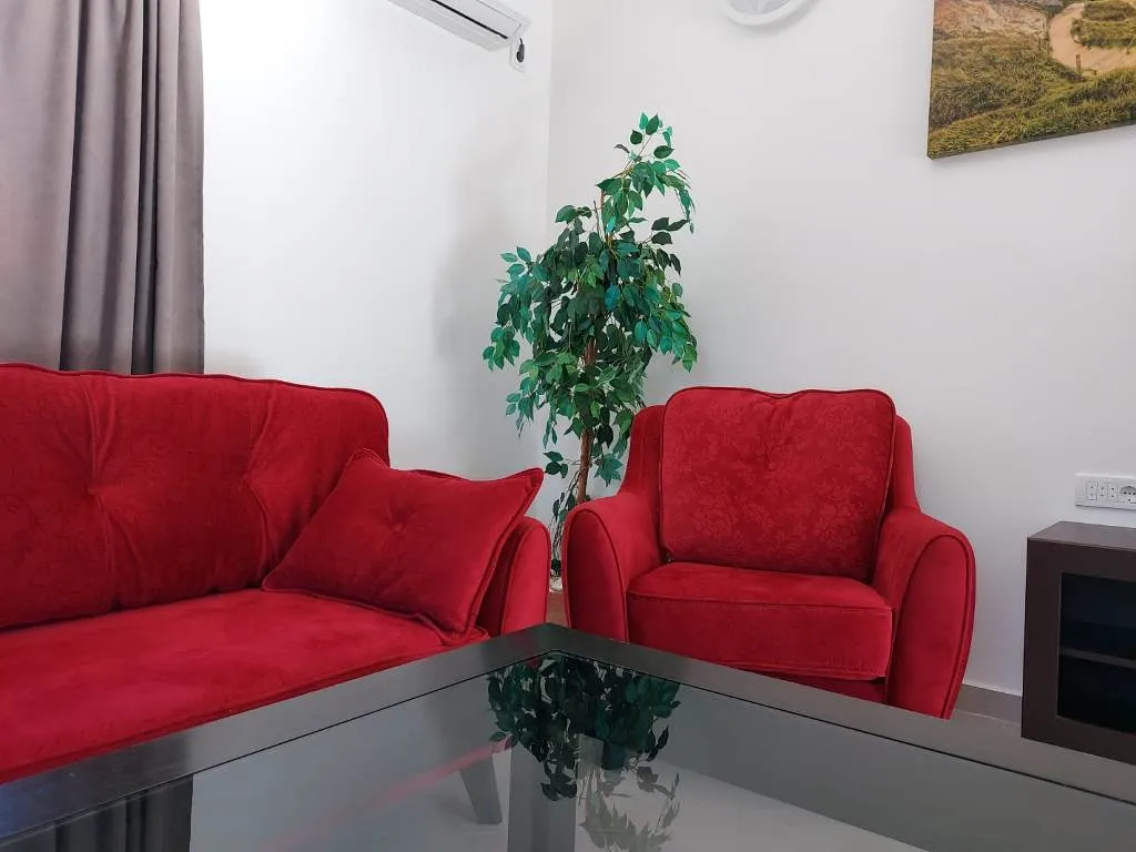 План дома: прихожая, кухня, столовая, гостиная, две спальни и ванная комната. Дом одноэтажный. В комплексе есть бассейн.