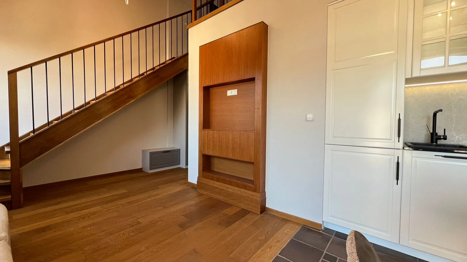 For sale a new luxury apartment in the center of Tivat with an area of 49 square meters (lower level 33 m2 plus gallery 16 m2).