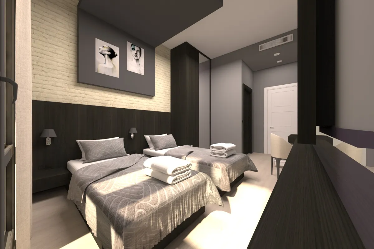 Общая площадь отеля составит около 800 м2. Отель будет иметь пять этажей и двадцать пять номеров площадью около 18 м2. Все номера будут оборудованы системой кондиционеров.