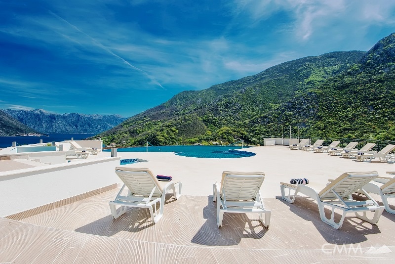 Apartment mit einem Schlafzimmer in einem Komplex mit Außenpool, Spa und Innenpool, 600 Meter vom Meer entfernt. Der Komplex befindet sich in der Stadt Donji Morinj in der Bucht von Boka Kotorska.