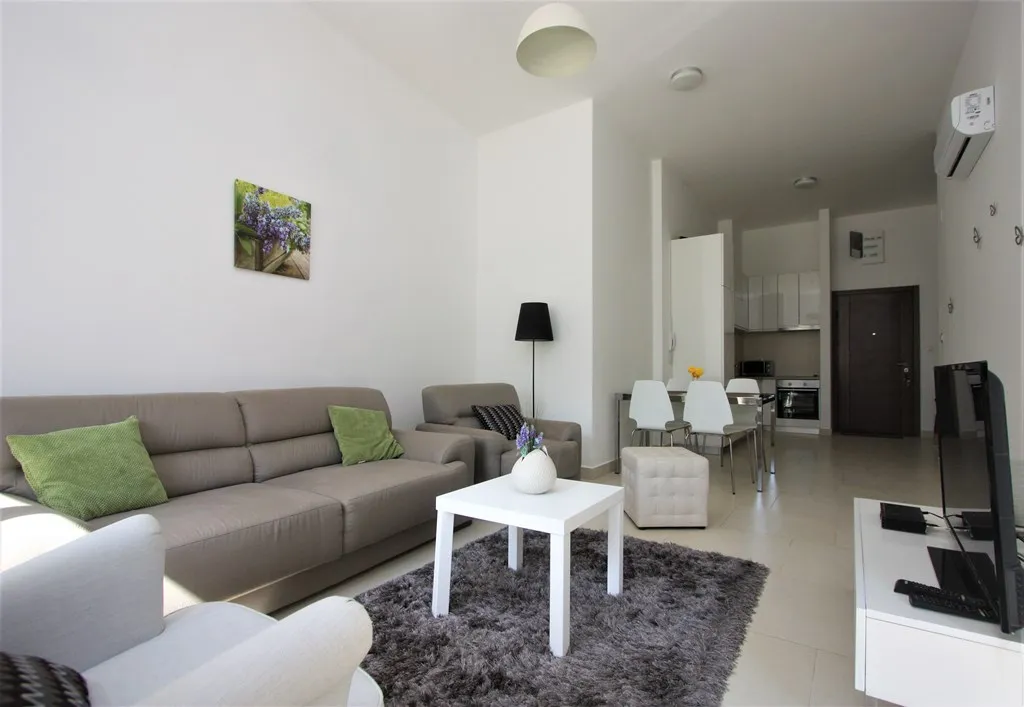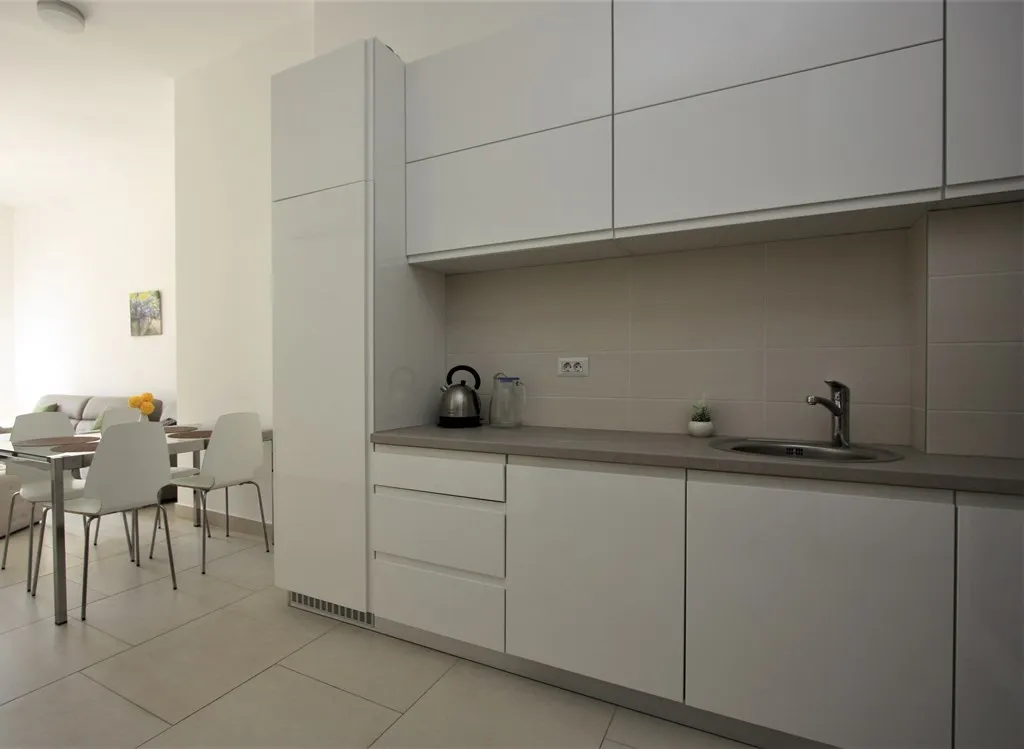 Das Apartment verfügt über 1 Schlafzimmer, einen Flachbild-Kabel-TV und eine voll ausgestattete Küche mit Geschirrspüler und Backofen. Ausgang zur Terrasse mit eigenem Daorik mit Grill Hona, Meer- und Poolblick. Das Apartment verfügt außerdem über ein Badezimmer mit Waschmaschine.