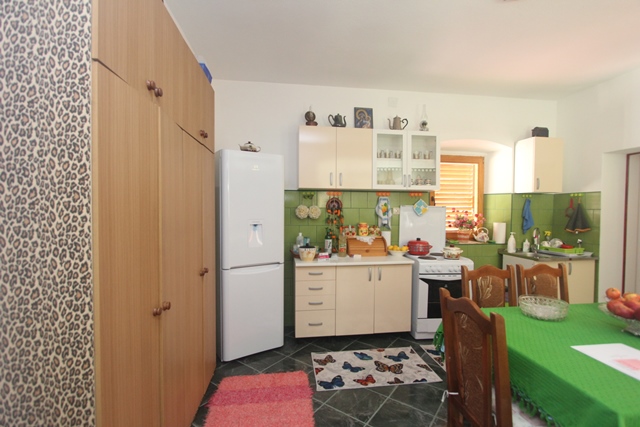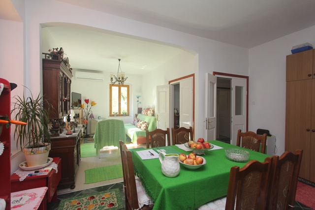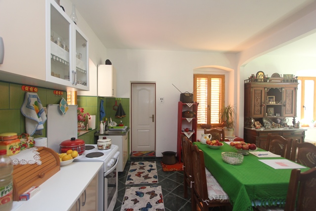 House for sale in Muo district, with total area 284 m2. The area around the house is 451 m2. The house is located on the front line, only 10 meters from the sea. On the first floor of the house there is a commercial space of 77 m2, with a terrace that goes to the first line and has an area of 56 m2. The commercial space is ideal for a restaurant / cafe. On the second and third floors of the building there are apartments with an area of 115 m2 and 92 m2.