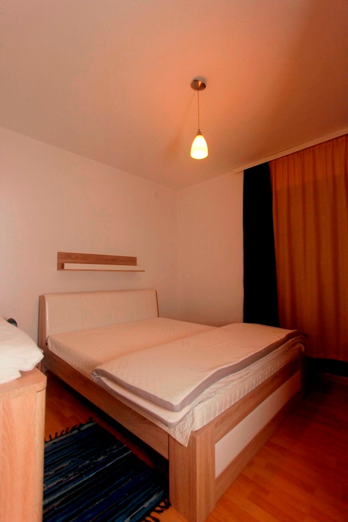 2. Stock: Badezimmer, Küche kombiniert mit Wohnzimmer, zwei Schlafzimmer.