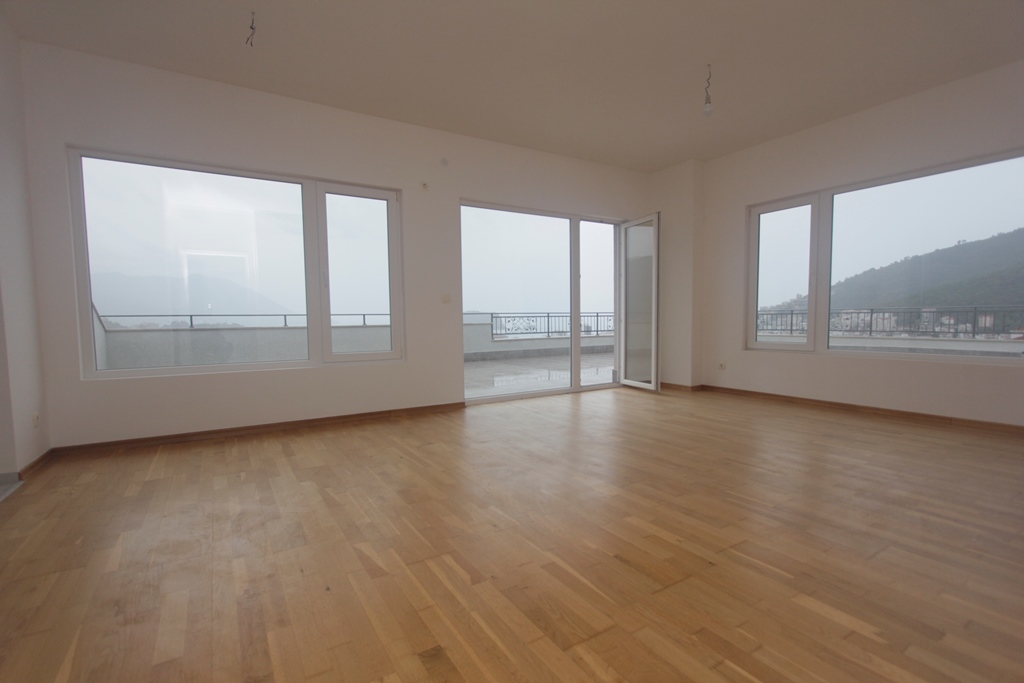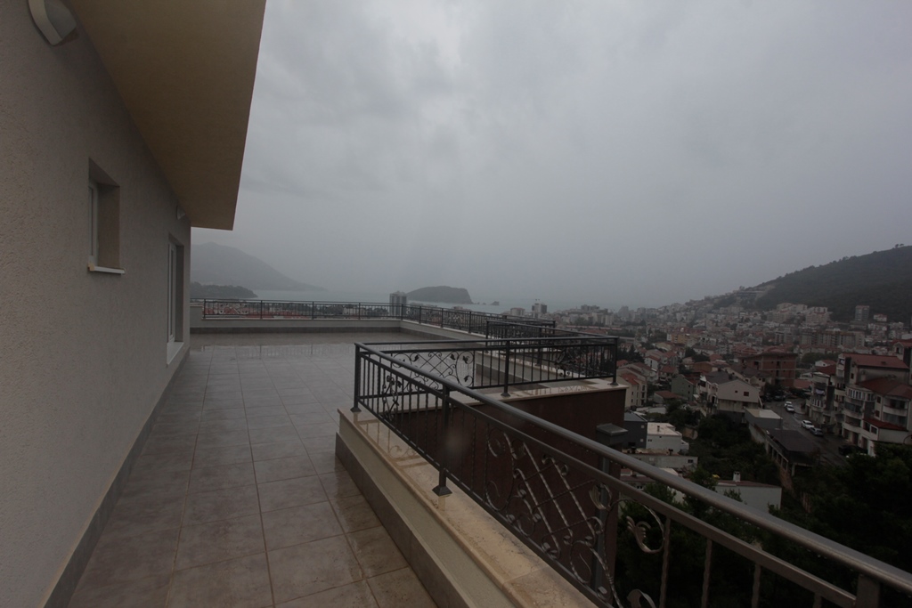 Luxury apartment for sale with an unforgettable sea view. The apartment is located on the last floor of an five-storey building in the area of Dubovica, Budva. The apartment has an area of 200 m2 and consists of: a living room with kitchen, two bedrooms, three bathrooms and a panoramic terrace of 80 m2. The price includes garage place and a parking space in front of the building. Nearby are shops, restaurants, pharmacy, and college.