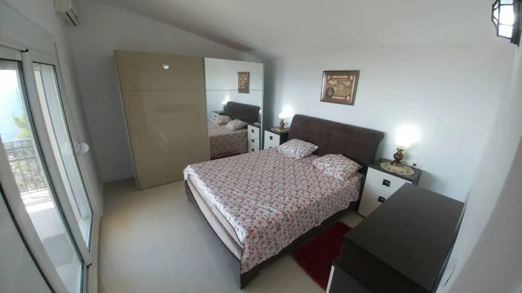 • на втором уровне коридор, гостиная с кухней и столовой, две спальни, ванная комната и терраса с видом на море.