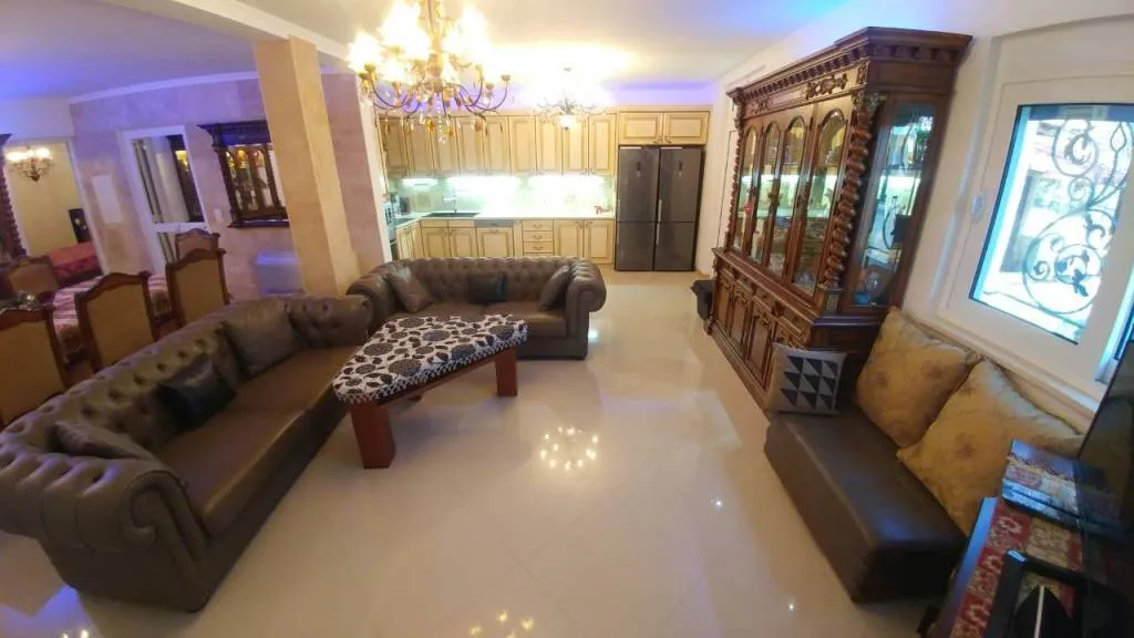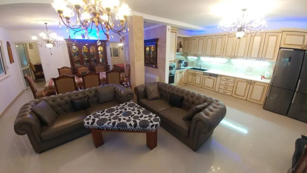 Во дворе также кладовая, гараж на 2 машины, летняя кухня и бассейн. Дом полностью меблирован качественной мебелью и оборудован всей необходимой бытовой техникой.