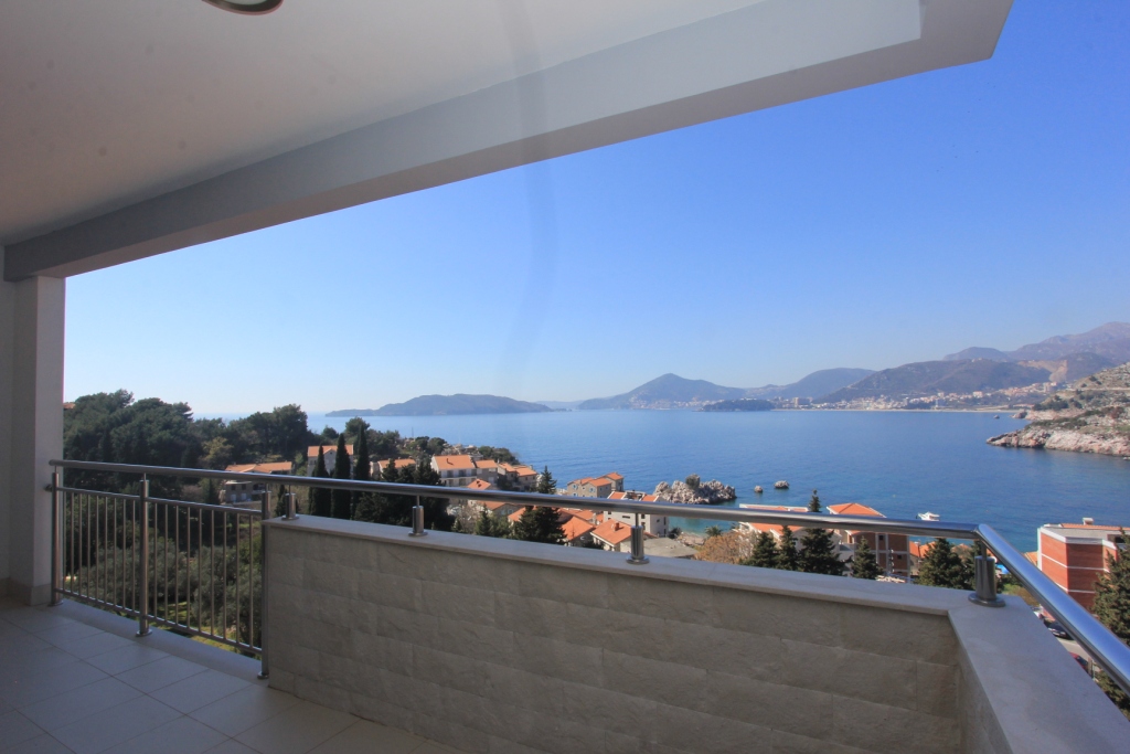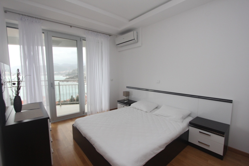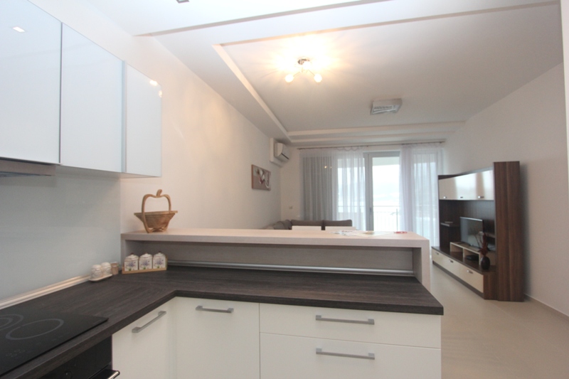 Vier Apartments mit einem Schlafzimmer und atemberaubendem Meerblick von der Terrasse. Jede Wohnung line einen eigenen Parkplatz. Moderne Apartments sind komplett ausgestattet: Sat-TV, Klimaanlage, Wasserkocher, Kühlschrank, Geschirrspuler, WiFi-Internet. Bewachung des Gebäudes 24 Stunden.