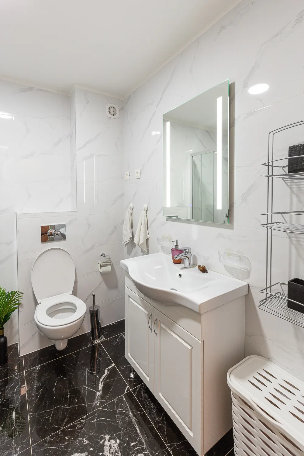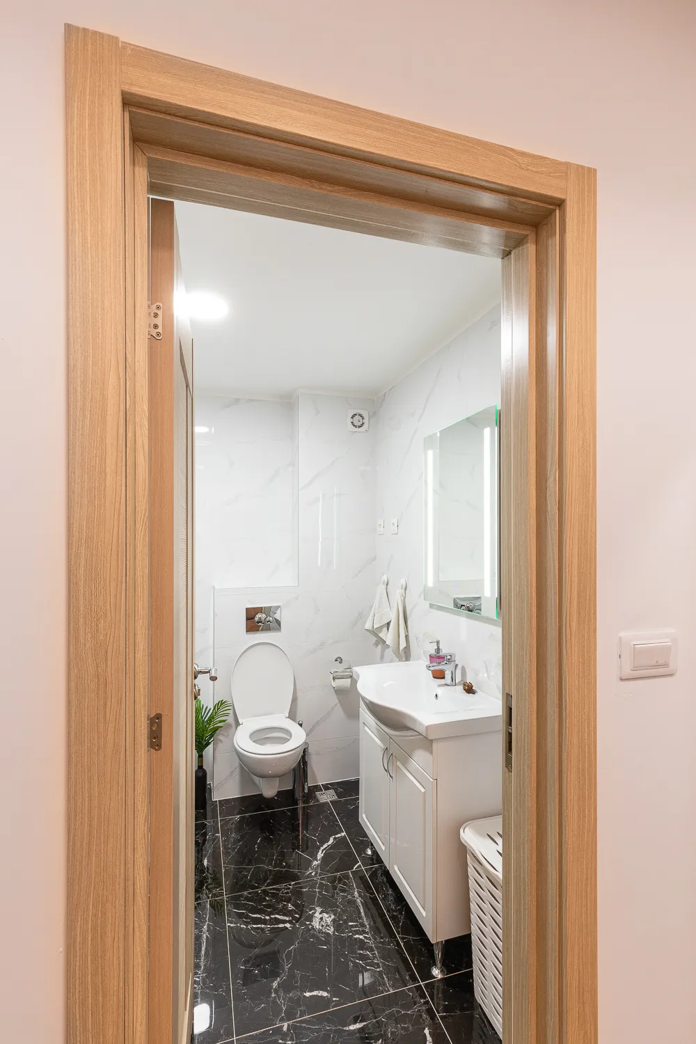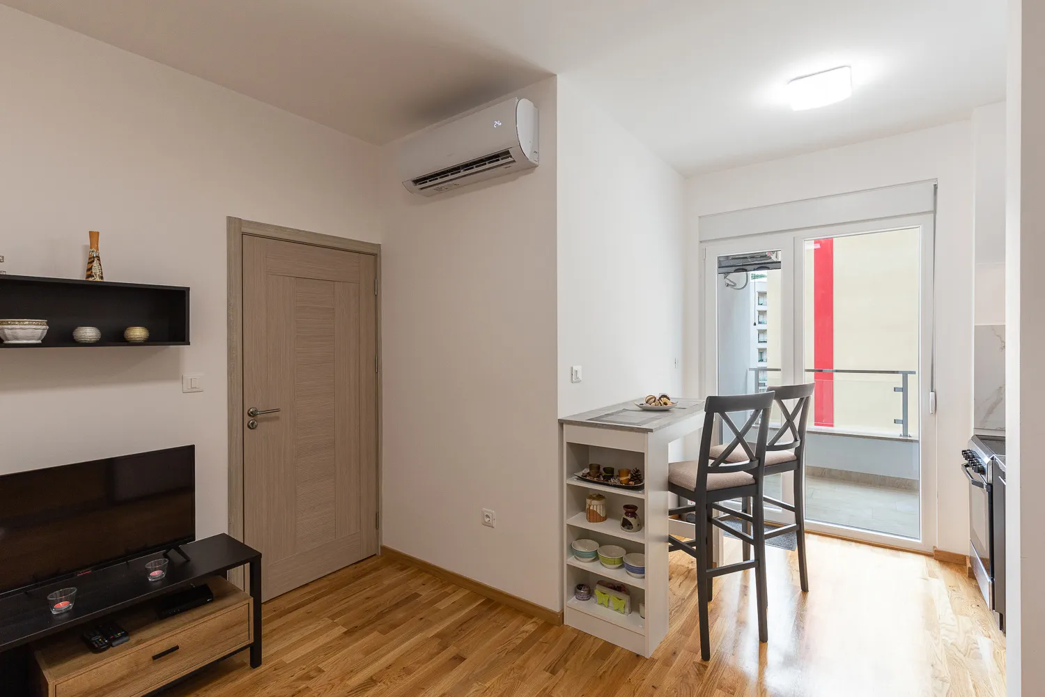 Квартира полностью меблирована и продается со всей мебелью. Кондиционер находится в гостиной.