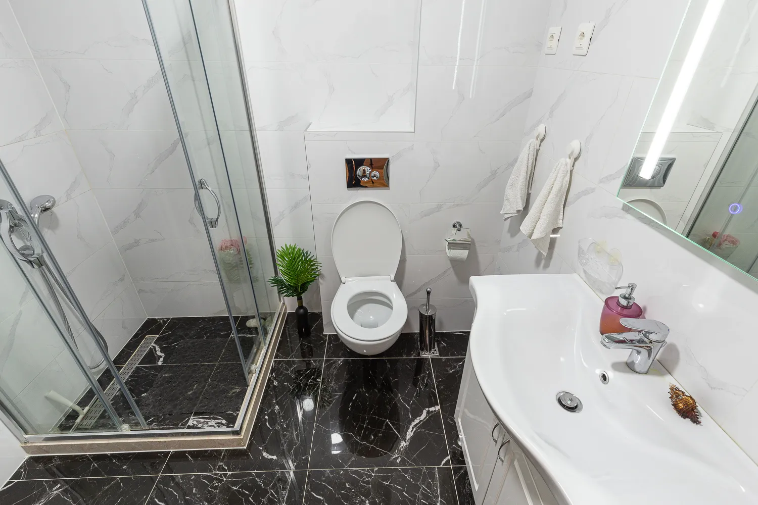 Состоит из: гостиной, совмещенной с кухней, одной спальни, ванной комнаты и террасы.