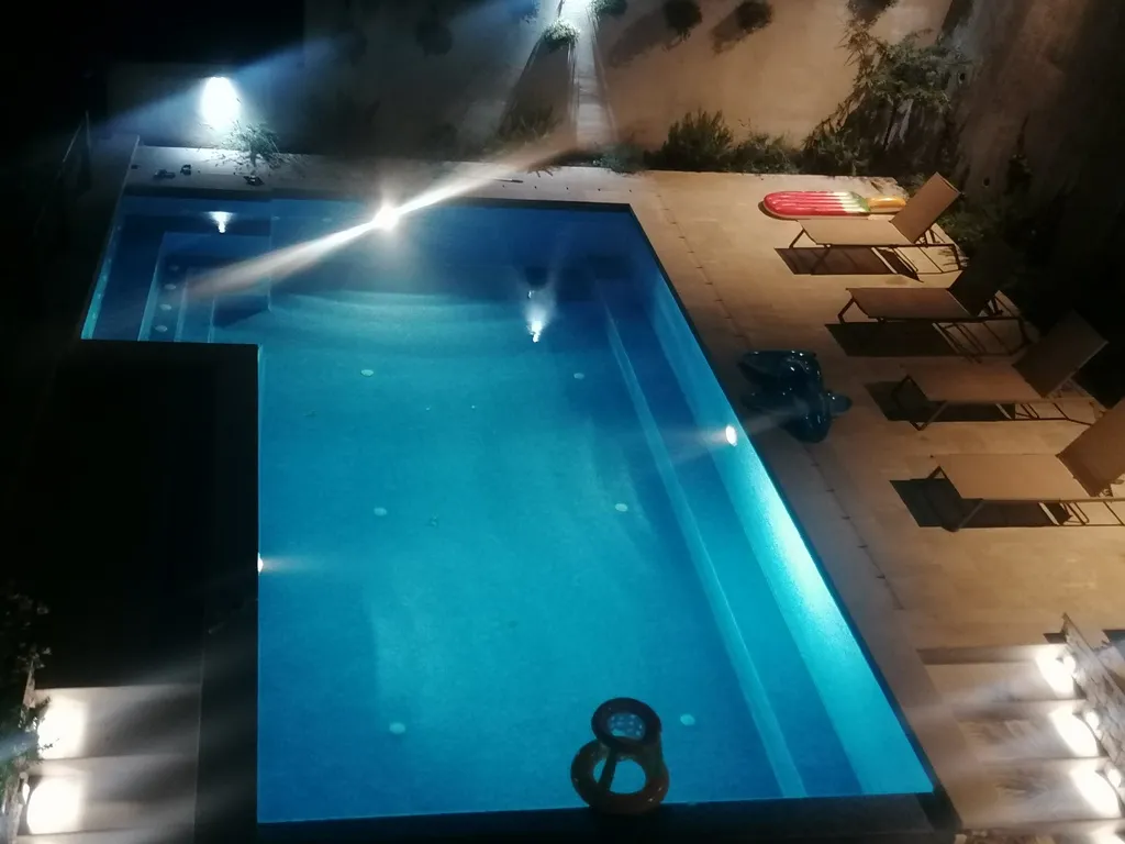 Перед виллой расположена парковка для 10 автомобилей, а этажом выше, во дворе виллы, - бассейн.