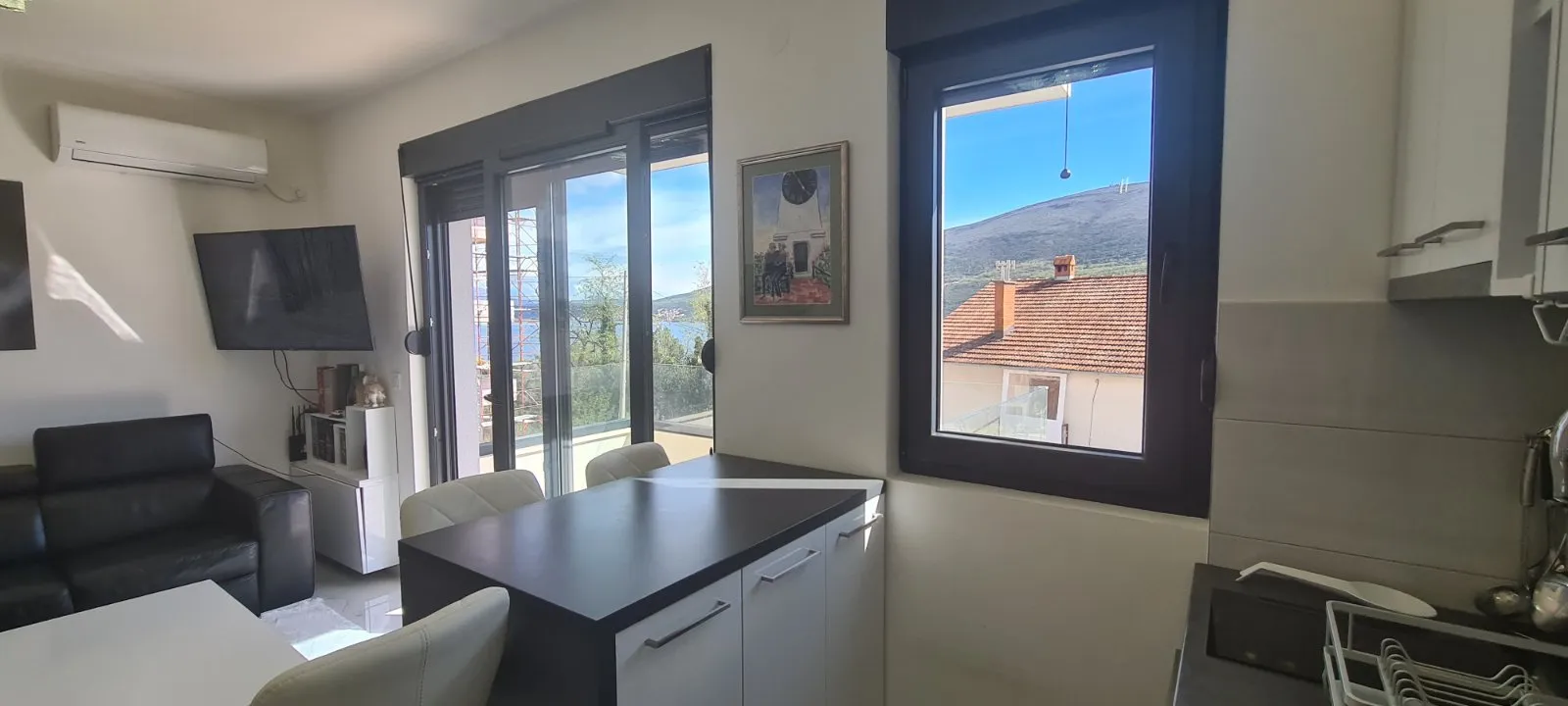 For sale is a beautiful one-bedroom apartment with a sea view in Djenovici, Kotor. This modern apartment has one bedroom, open space kitchen with dining room and living room and two terraces.