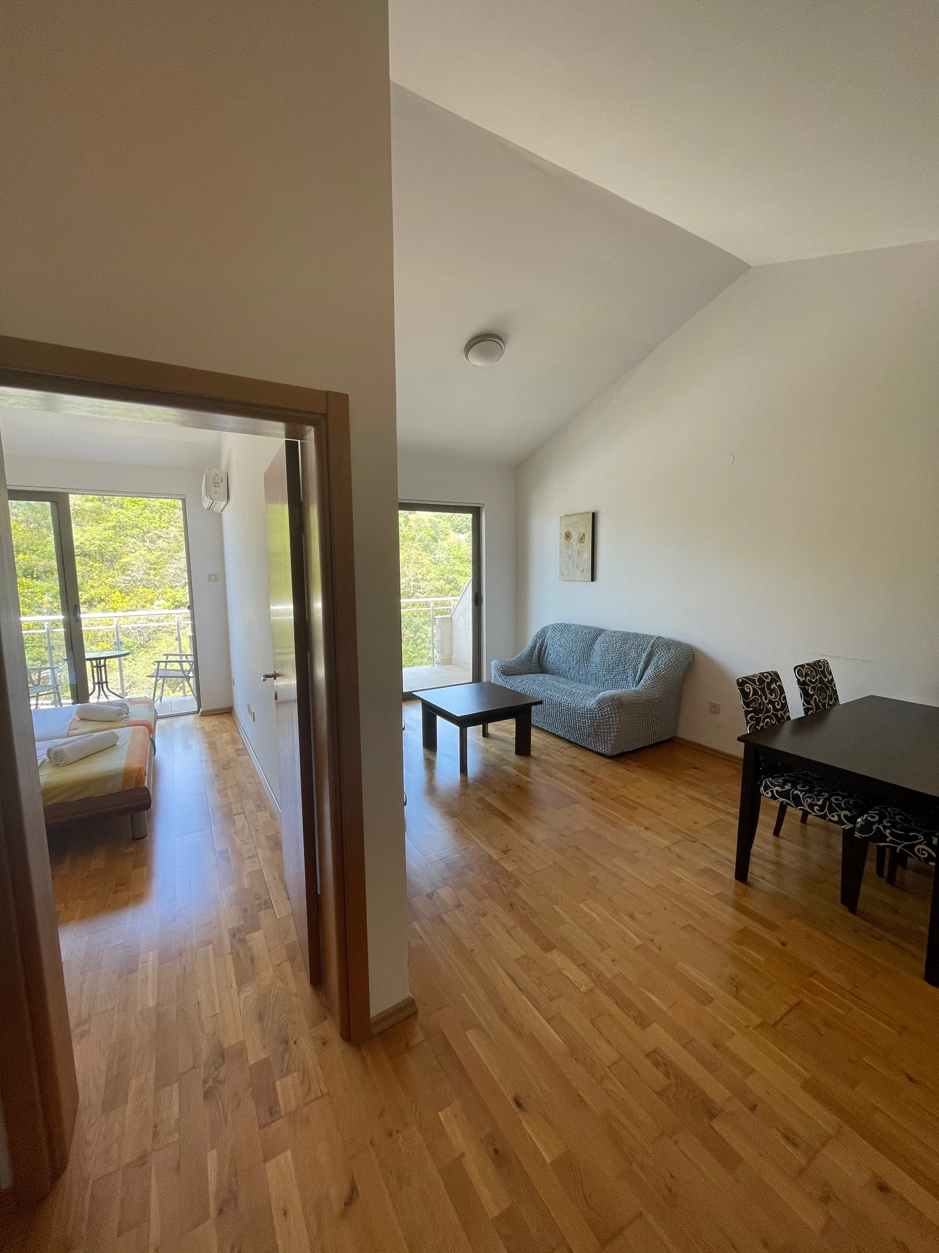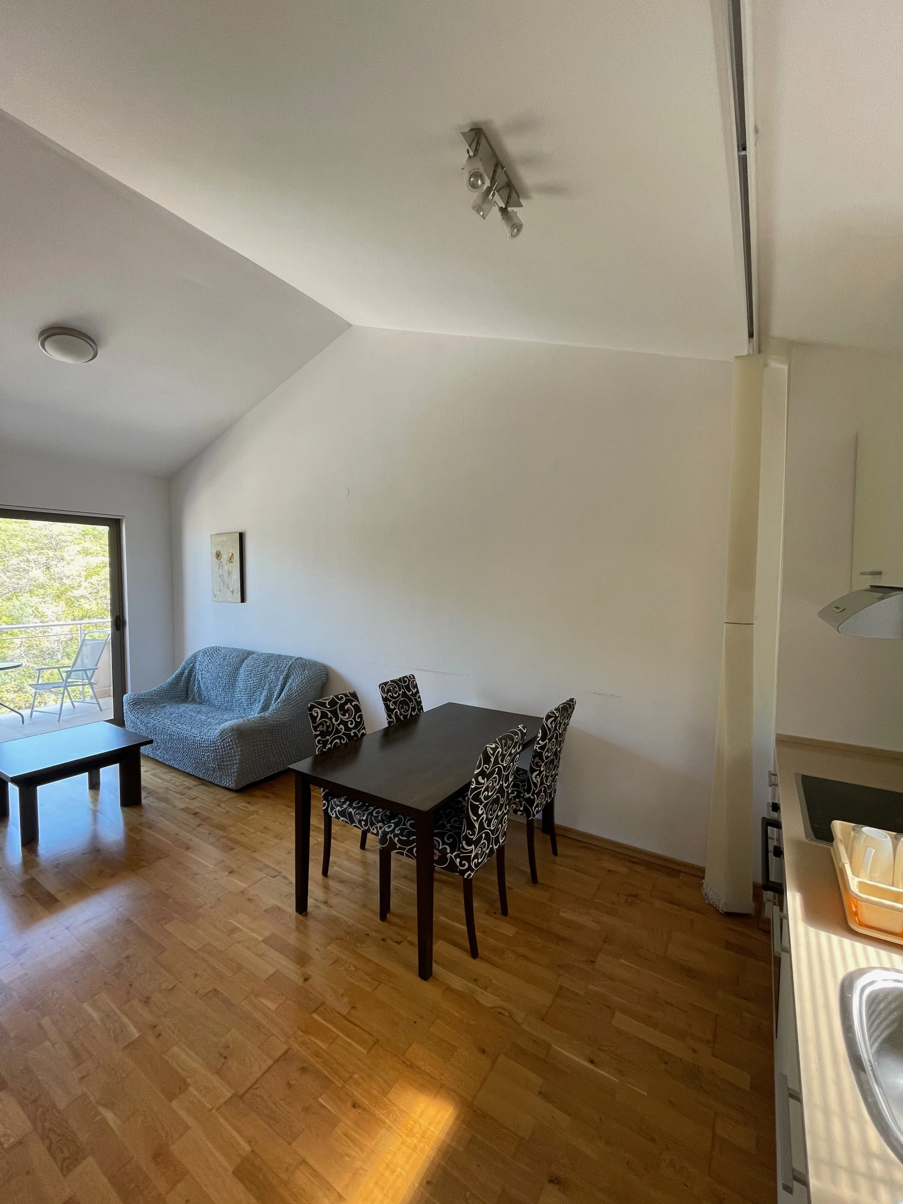 Within walking distance from the apartment are shops, cafes, post office, bus stop.