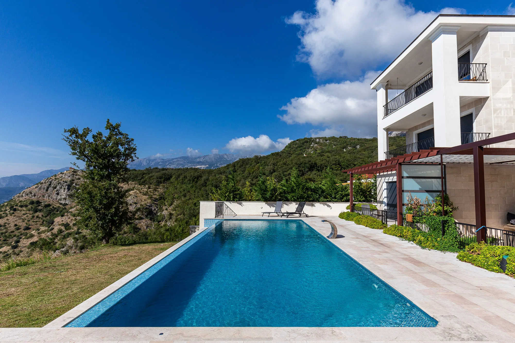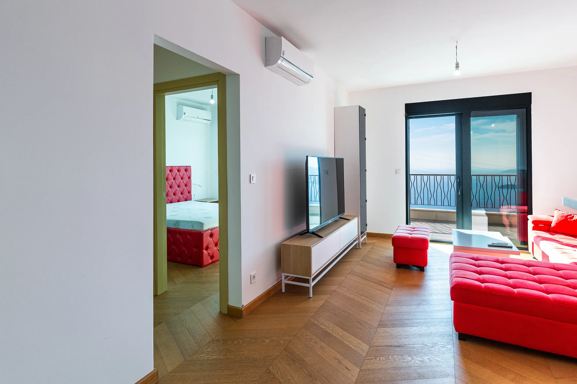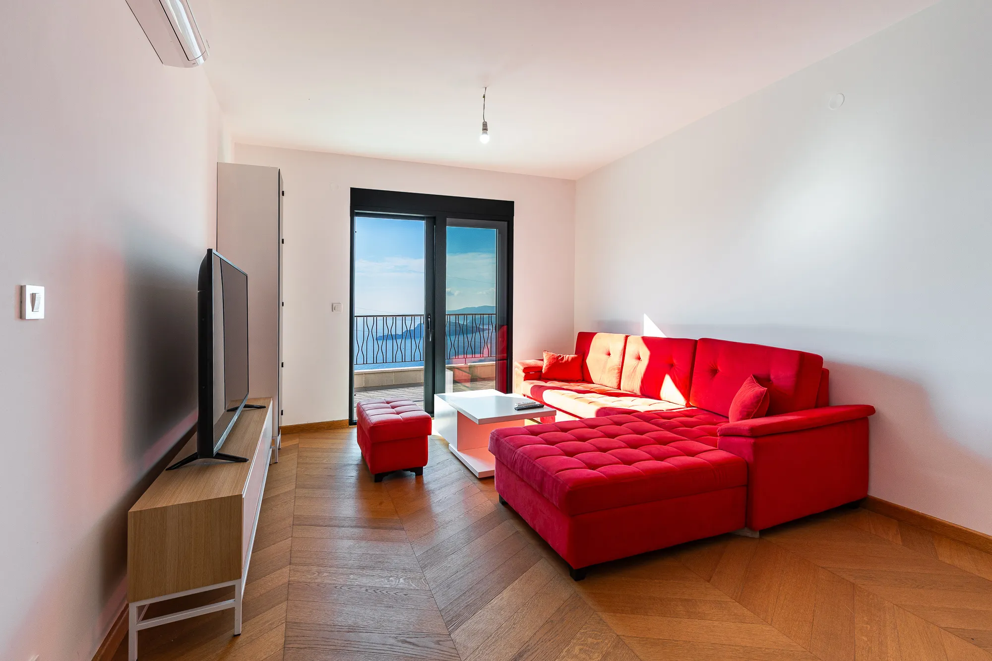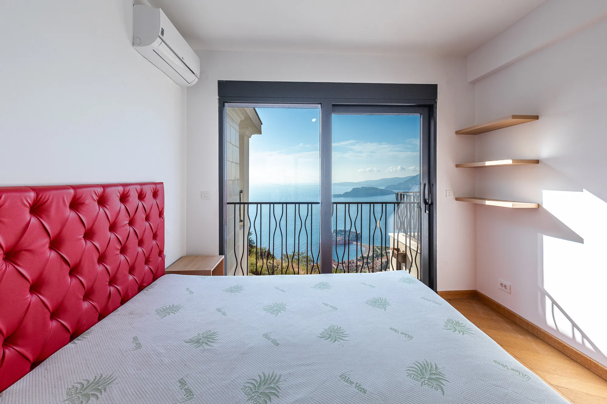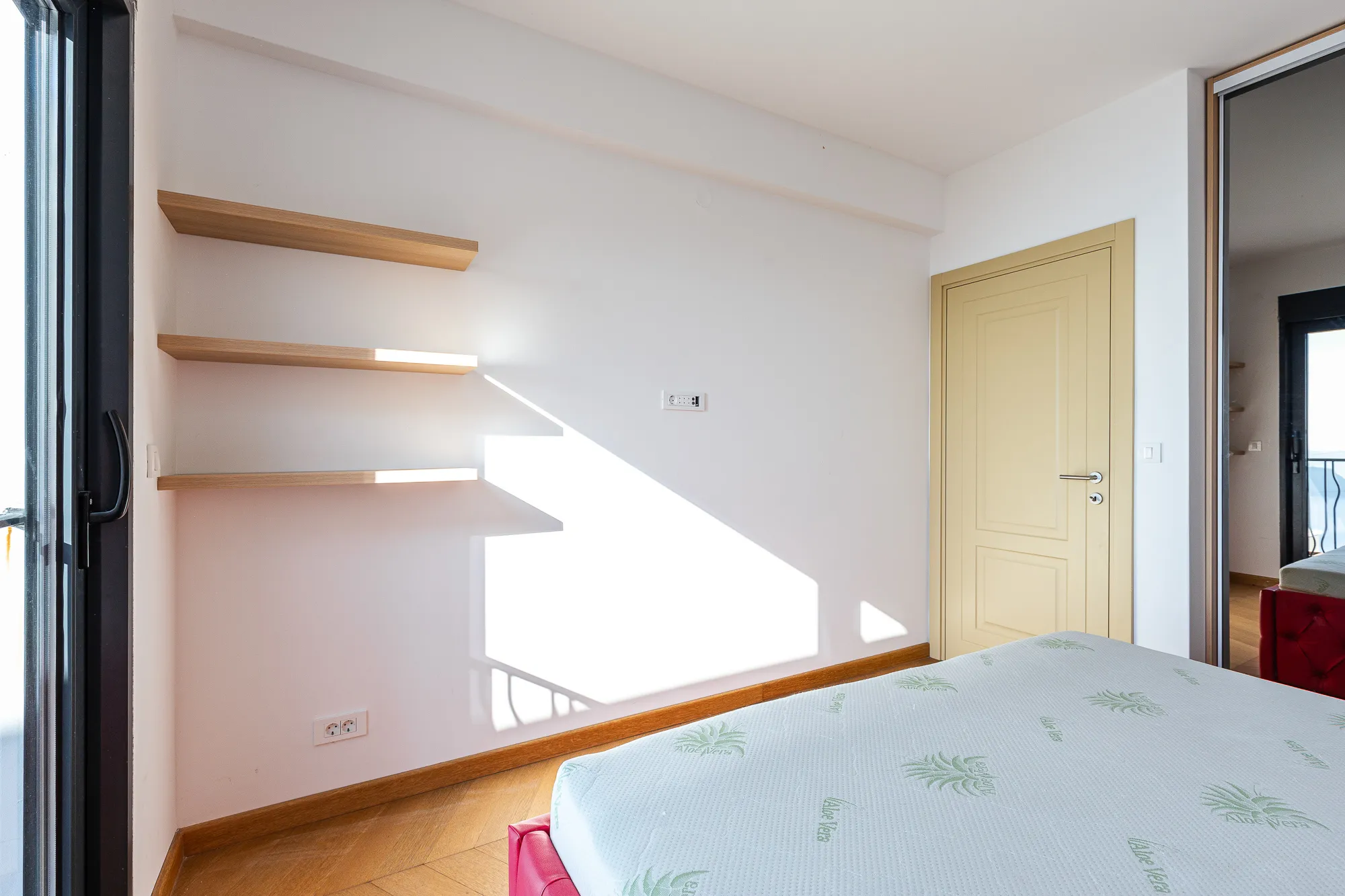 One-bedroom apartment for sale in a quiet location in an elite complex near Budva. The complex is located on a hill, offering a fantastic view of the entire Budva Riviera, Sveti Stefan, and the island of Sveti Nikola.