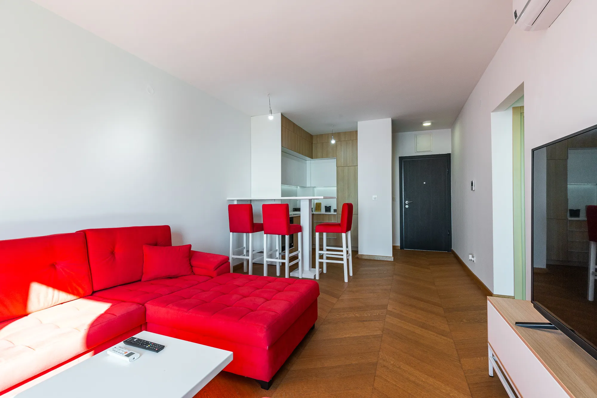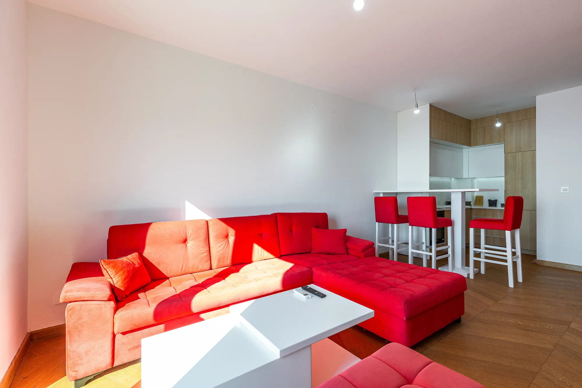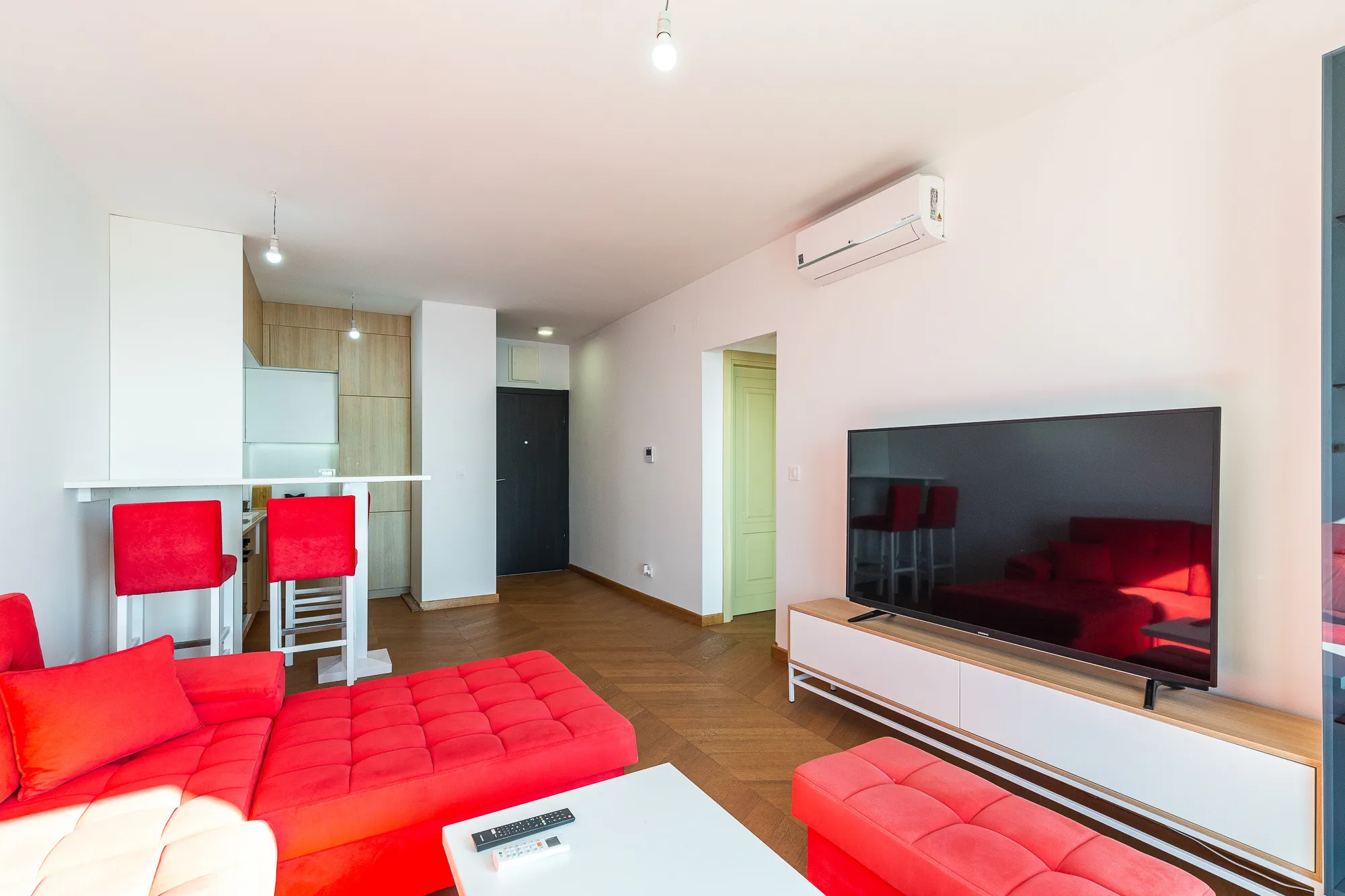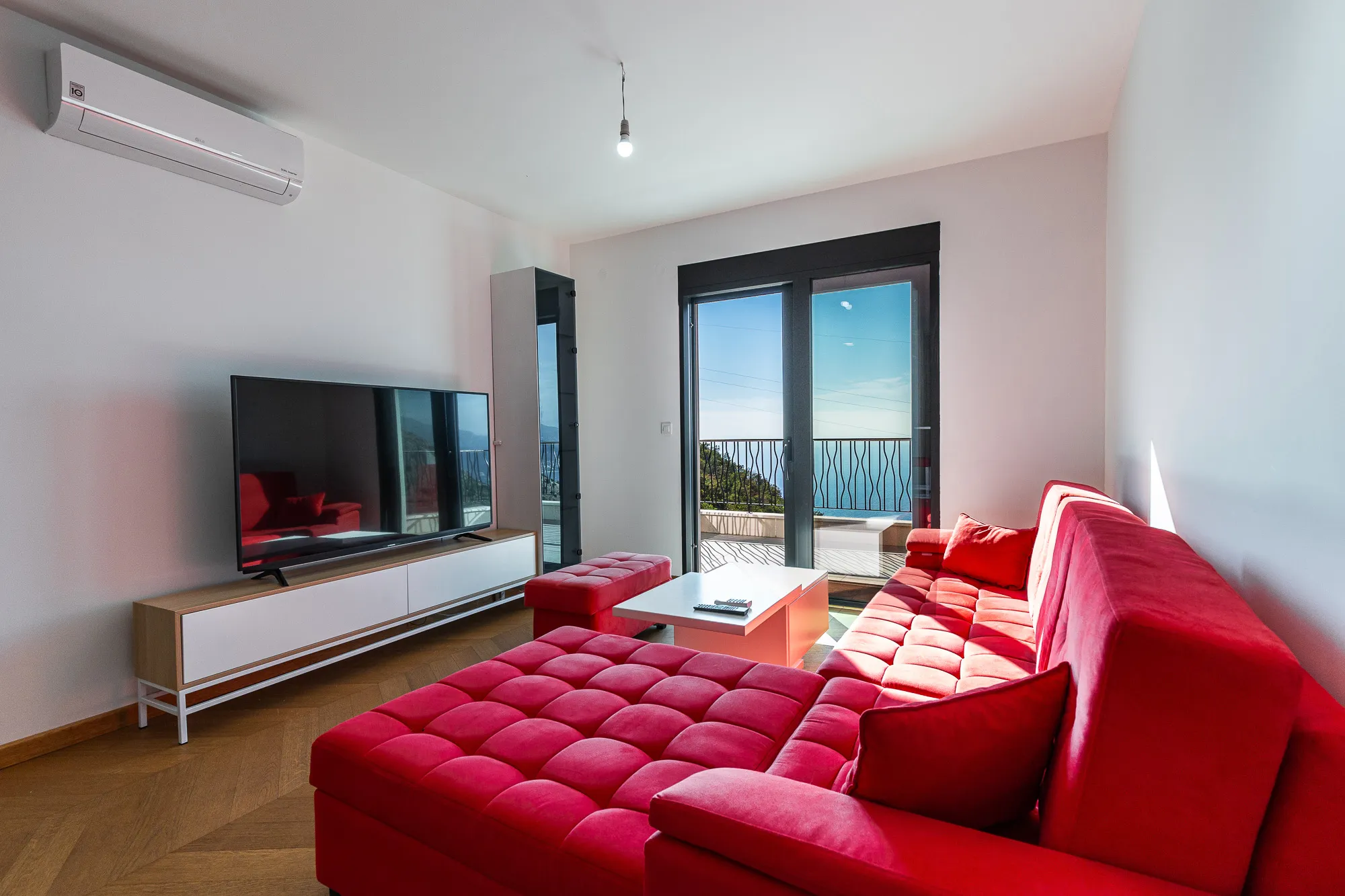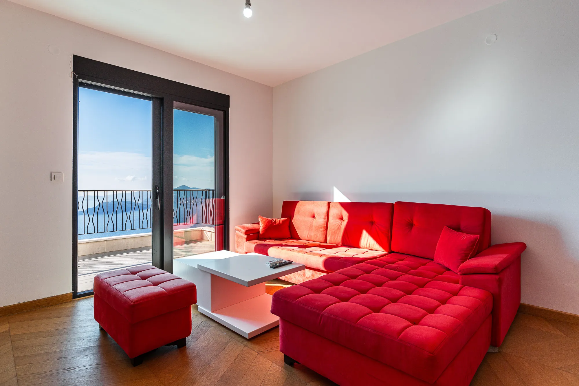 One-bedroom apartment for sale in a quiet location in an elite complex near Budva. The complex is located on a hill, offering a fantastic view of the entire Budva Riviera, Sveti Stefan, and the island of Sveti Nikola.