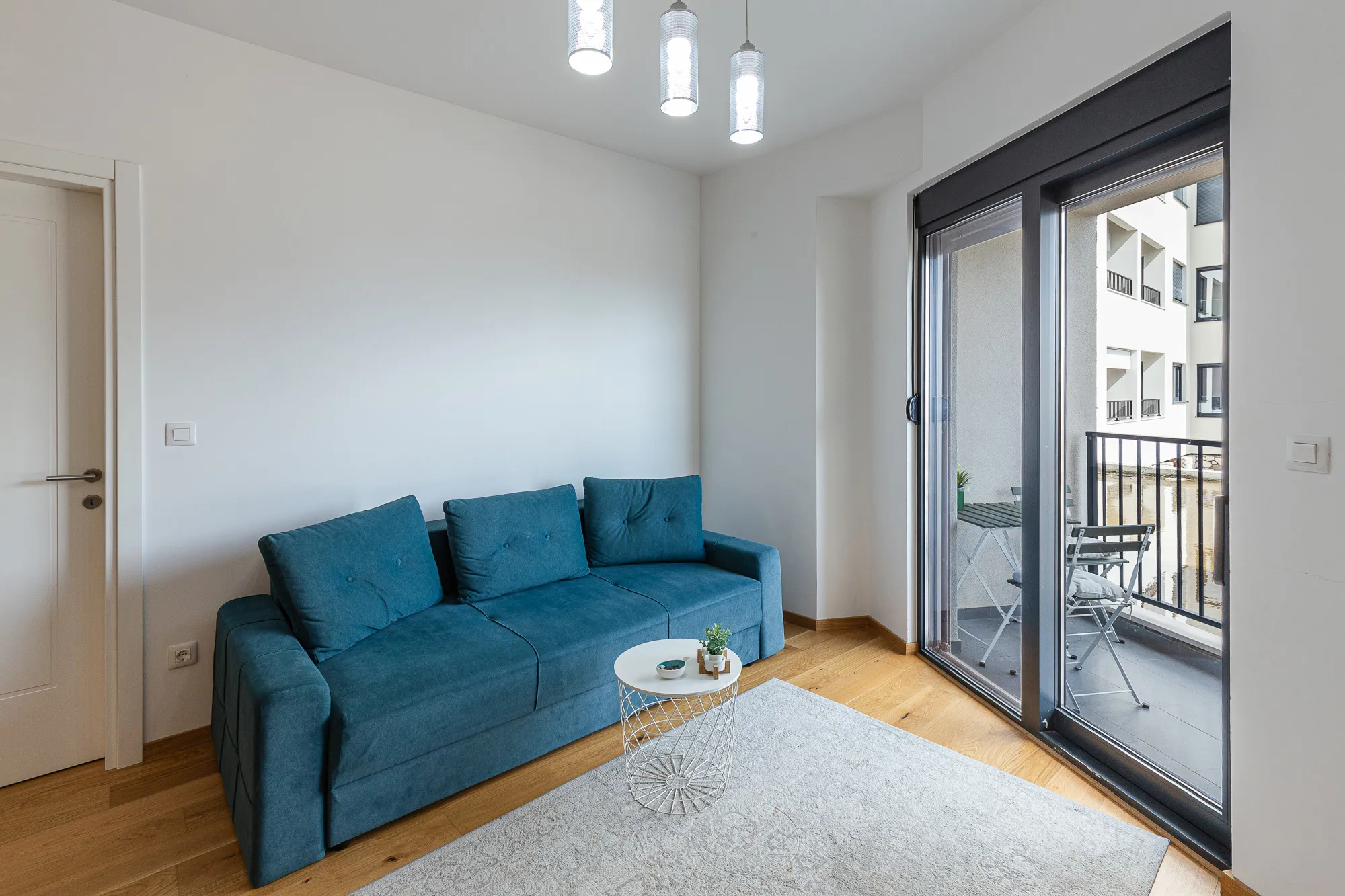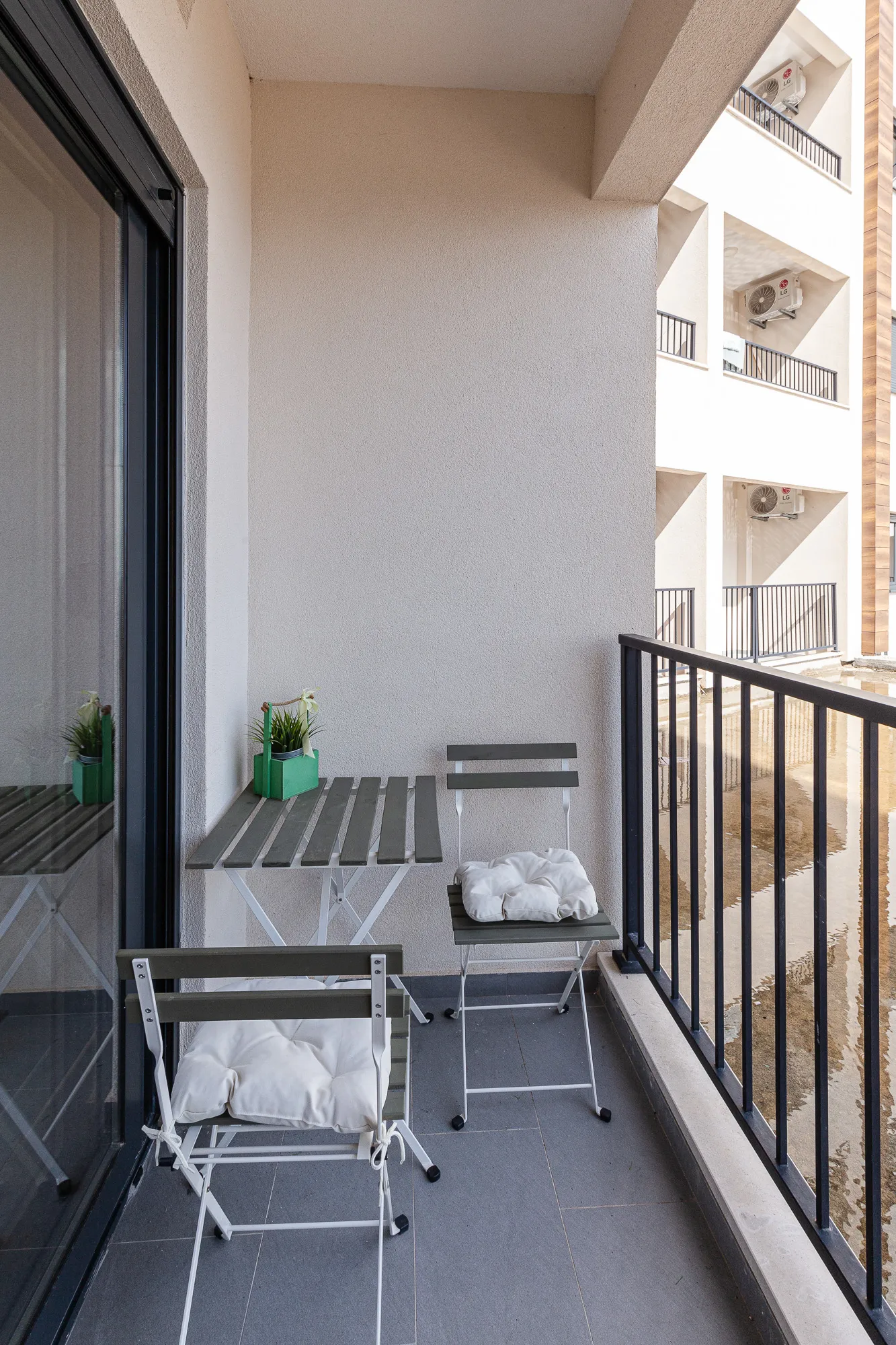 There is a large terrace that is shared by three apartments, providing a perfect place for socializing and relaxing.