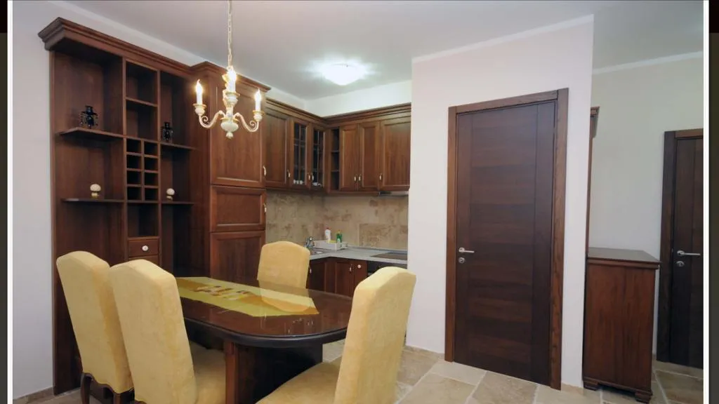 Aufteilung der Wohnung: Wohnzimmer kombiniert mit Küche und Esszimmer, Schlafzimmer, Badezimmer, WC. Die Wohnung ist sehr schön und geschmackvoll eingerichtet. Es ist komplett ausgestattet und die Wohnung wird mit allen Möbeln verkauft.