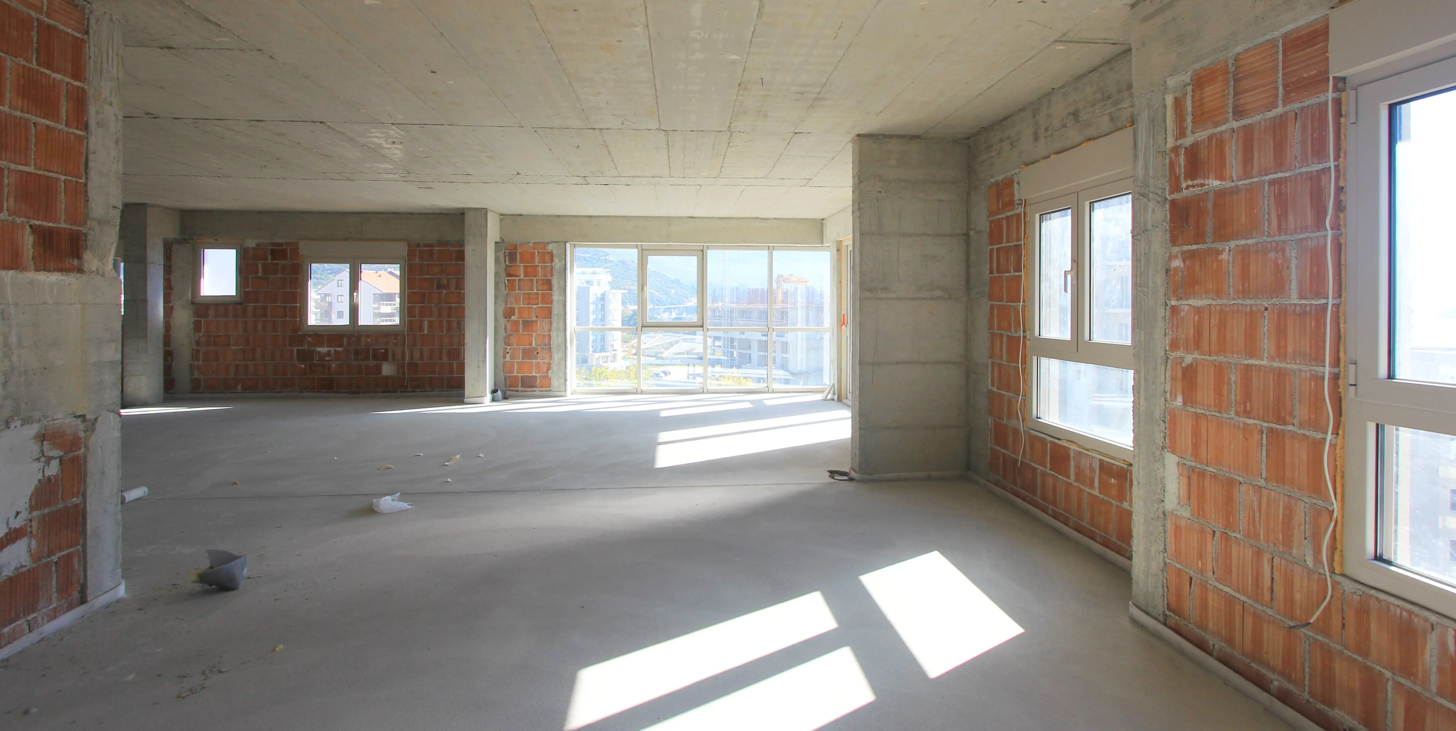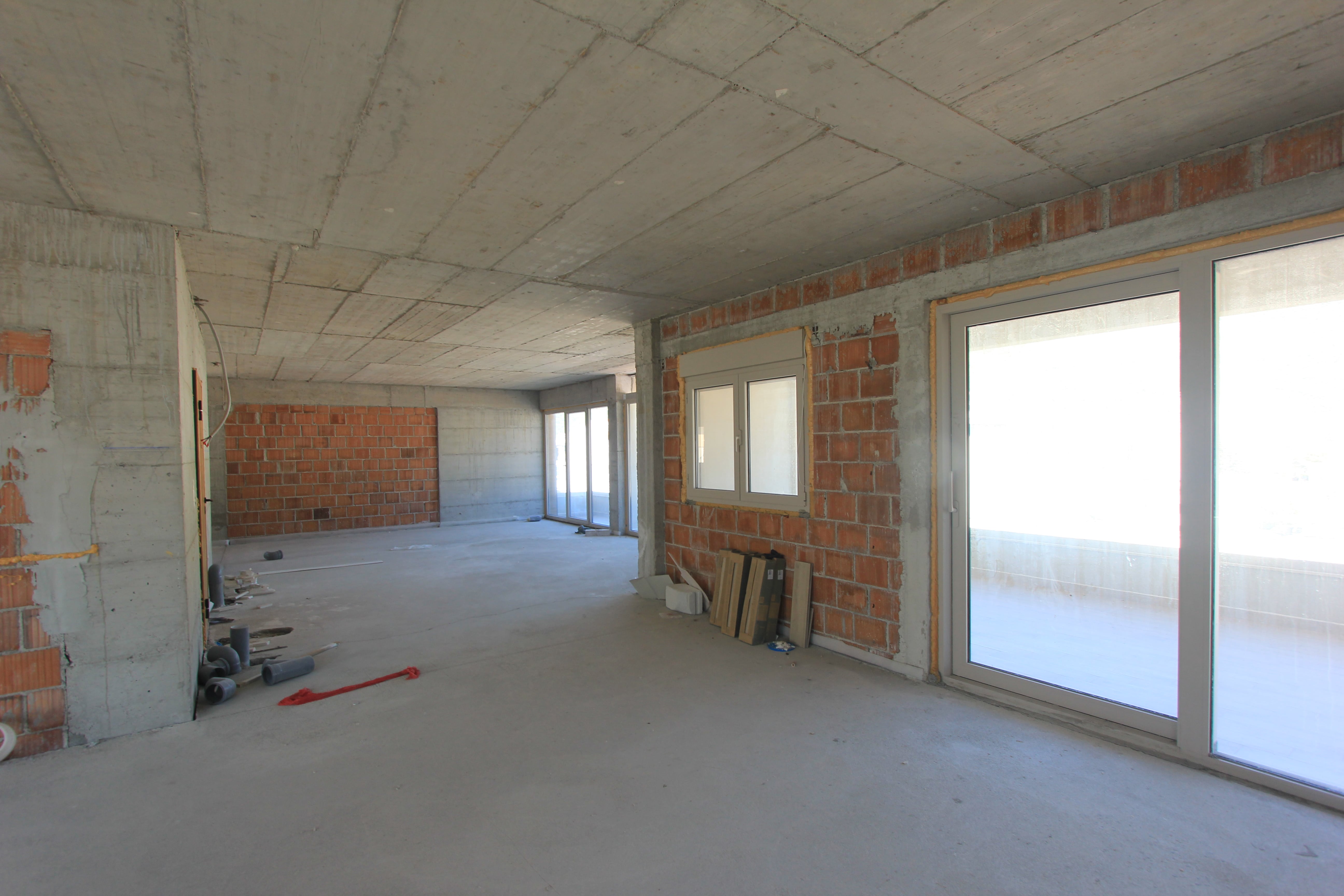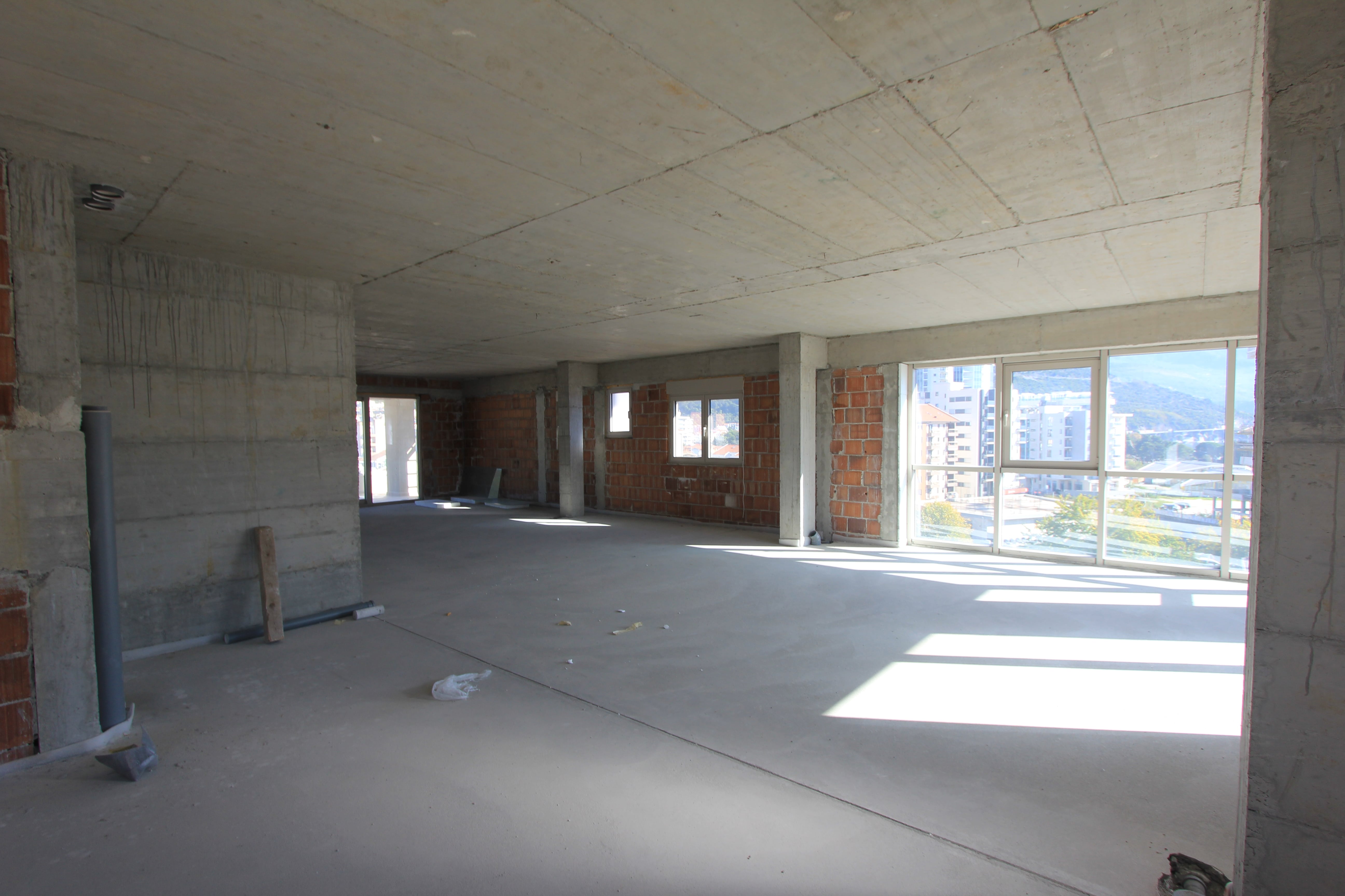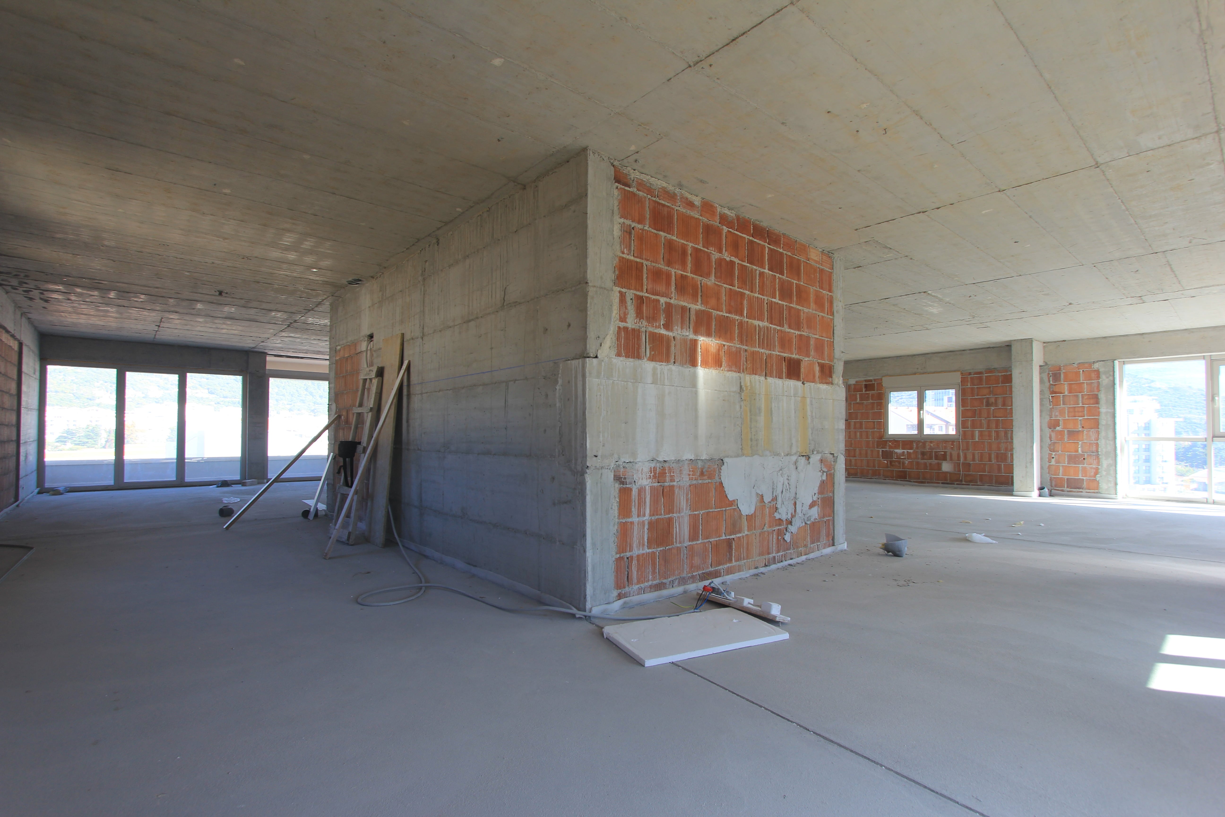 Die Wohnung ist unfertig, derzeit in der Rohbauphase. Auch eine Dachterrasse soll es geben. Die Wohnung kann als Penthouse oder als zwei Wohnungen von 110m2 und 80m2 verkauft werden und kann auch als mehrere kleinere Wohnungen als Investition zur Miete verkauft werden. Es können maximal 4 Badezimmer gebaut werden.