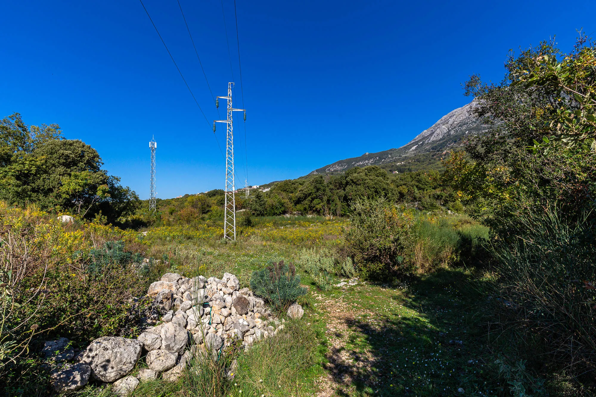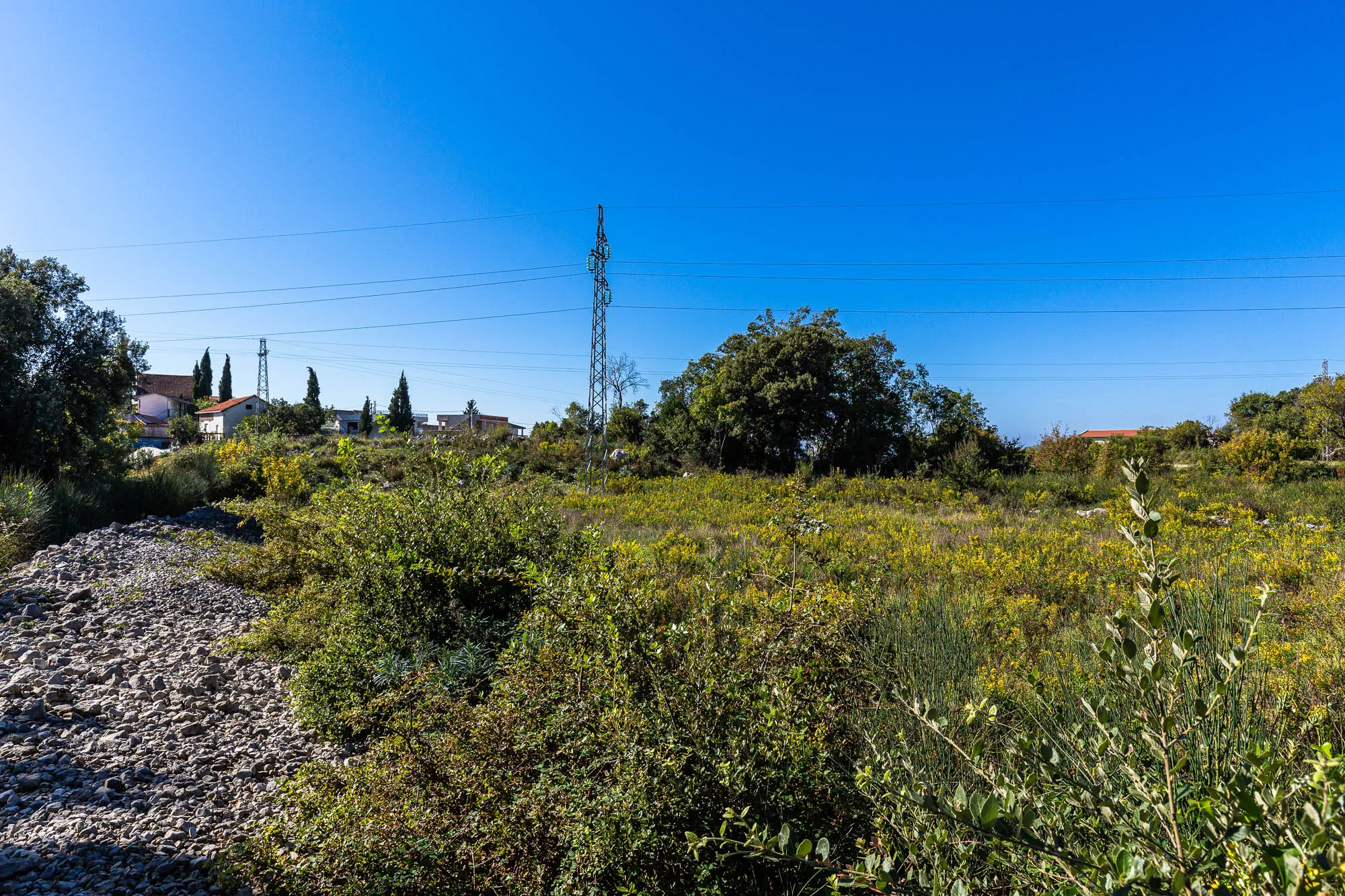 Участок находится всего в нескольких минутах езды от главной магистрали в Добре Воде, а расстояние до моря составляет всего 1.5 км, что делает его идеальным для спокойной жизни или туристического бизнеса. Уникальное расположение предлагает тишину и природу, оставаясь при этом вблизи всех необходимых удобств.