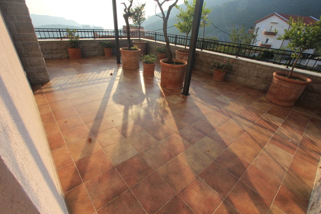 The second and fourth floors have access to the terraces with beautiful views of the Montenegrin coast. In each room is installed: underfloor heating, air conditioning, alarm system. The area of the plot is rich with fruit trees (orange, pomegranate, fig, mandarin, pear, apple, etc.).