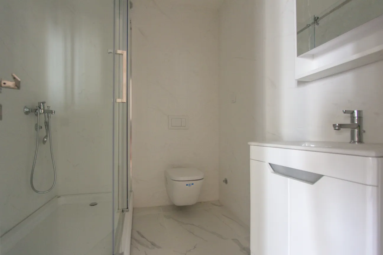 Квартира имеет площадь 38 м2 и расположена на 3-м этаже недавно построенного здания с современным внешним видом.