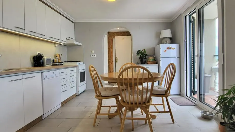 Вилла имеет современный дизайн, полностью меблирована и оборудована всей необходимой техникой. Имеет общую площадь 213м2. Разделена на три уровня и расположена на участке 453м2. Первый этаж состоит из гостиной и столовой открытой планировки, спальни и ванной комнаты. На втором этаже расположилась гостиная и столовая, две спальни и две ванные комнаты. Третий этаж состоит из гостиной, кухни, спальни и ванной комнаты. На крыше дома расположены 2 террасы на крыше с панорамным видом на залив. Перед домом есть большой бассейн. Расстояние до моря составляет всего 450м.