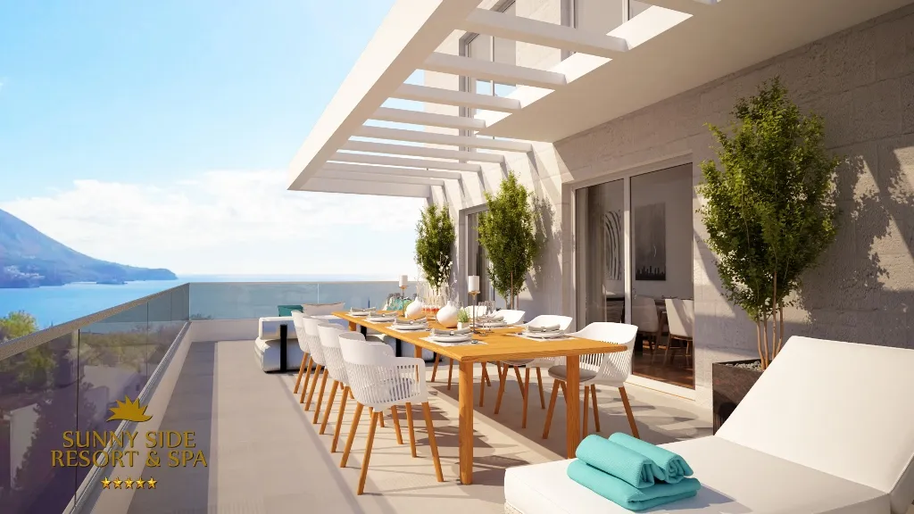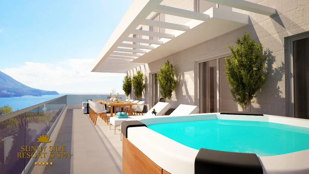 Sunny Side Spa & Conference ist ein einzigartiger Komplex mit hervorragender Lage und beeindruckender Infrastruktur. Wenn Sie 7-8 Minuten in Richtung Meer gehen, ohne steile Hänge, entlang einer angenehmen Straße im Wald und dabei das Fließen eines Baches genießen, gelangen Sie zum Strand von Becici, einem der besten Strände in Montenegro, einem Strand mit der blauen Flagge. einer der saubersten Strände Europas!