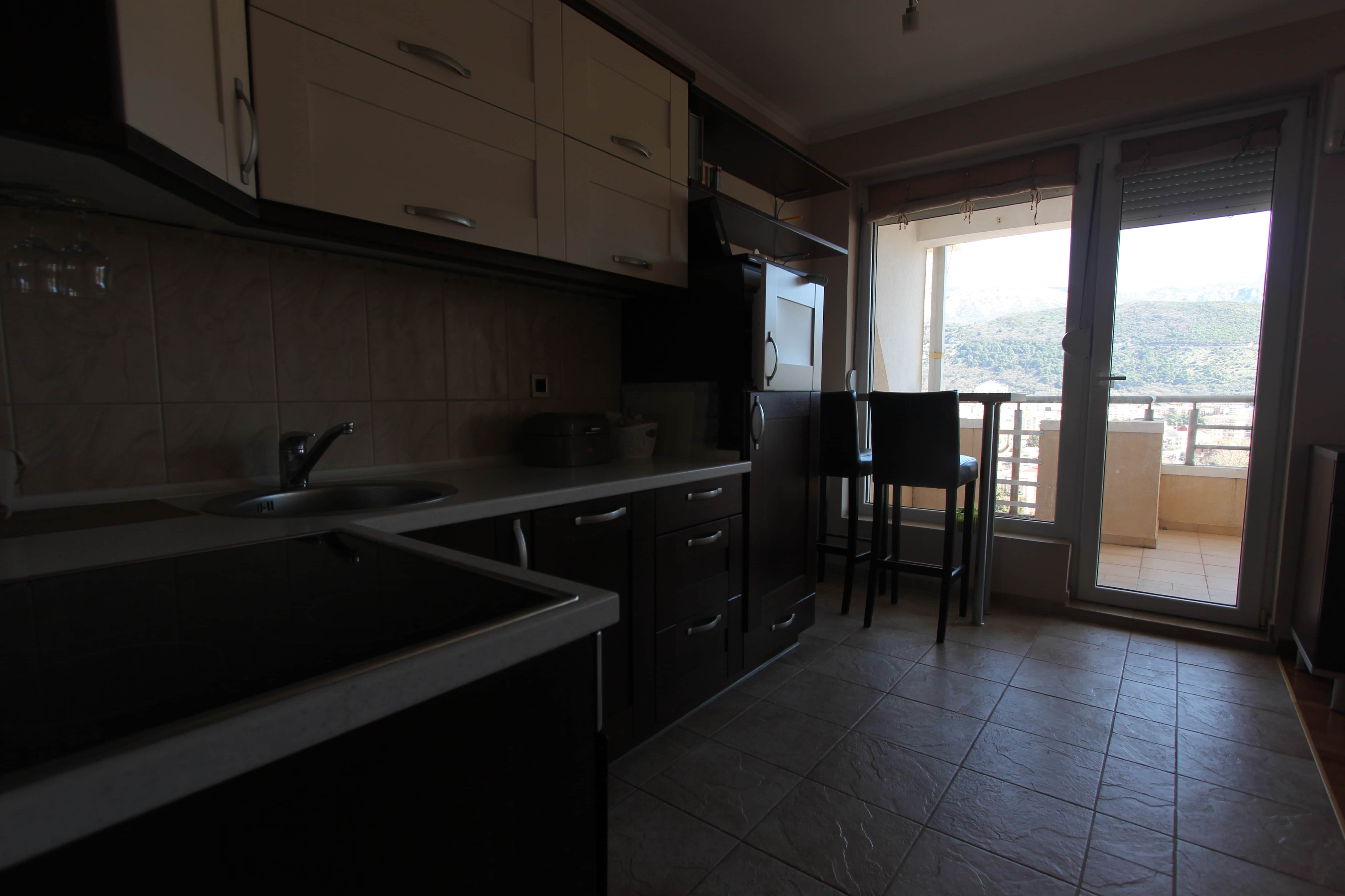 The apartment consists of an entrance hall, two bedrooms, a bathroom, a kitchen, a living room and two terraces, one of which has a large area, a view of the whole of Budva and a partial sea view.