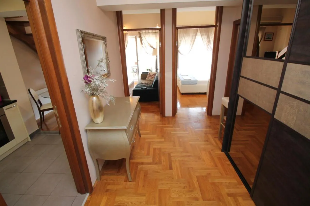 For sale a two-bedroom duplex apartment in Budva. The apartment has an area of 70 m2 and is located on the 7th floor of a building with an elevator.