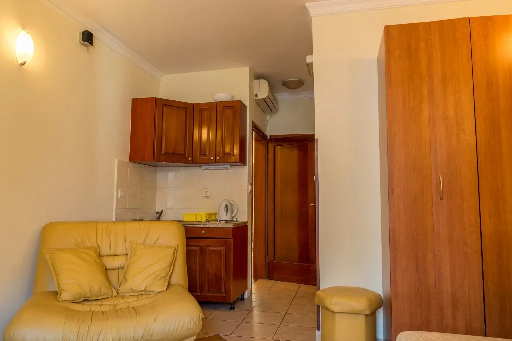 Zwei Häuser zu verkaufen. Restaurant an der Küste, im mediterranen Stil eingerichtet, mit einer Fläche von 100 m2 im Erdgeschoss des Hauses, seit 8 Jahren in Betrieb. Neben zwei Häusern, von denen sich eines in der ersten Meereslinie befindet, gibt es einen 360 m² großen Ponton. Ein Grundstück von 150m2 ist für ein Restaurant reserviert, der Rest ist für Parkplätze und Bootsplätze vorgesehen. Es gibt auch drei Einzimmerwohnungen von 30m2 und eine luxuriöse Maisonette von 85m2 im Haus. Alle haben Meerblick und eine Terrasse, auf der Sie die frische Sommerbrise genießen können.